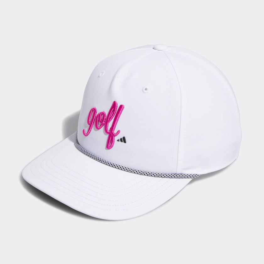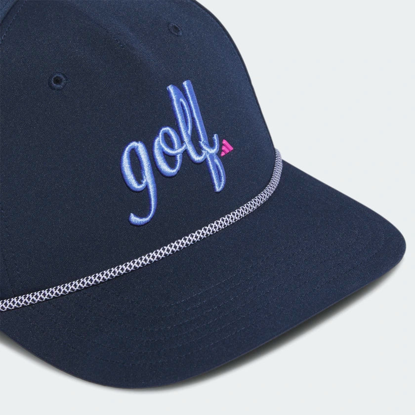 Celebrate the game you love with this adidas golf hat. It shades your eyes during sunny rounds and features an adjustable snapback closure for a customized fit. The five-panel design fits close to the head for a comfy feel. Made with a series of recycled materials, and at least 40% recycled content, this product represents just one of our solutions to help end plastic waste.