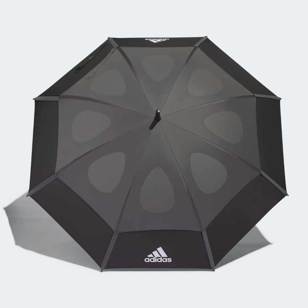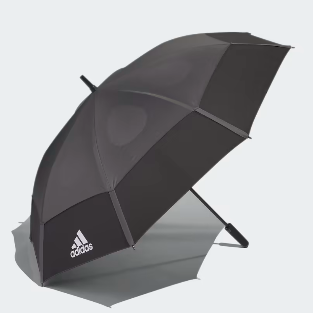 Make sure you and your clubs stay dry during rainy rounds. This adidas golf umbrella is made for wet days with its double canopy and water-repellent coating that sheds raindrops quickly. Aerodynamic venting allows wind to blow through it so you can ride out gusts with ease. A quick-release automatic open makes it easy to deploy on the fly.