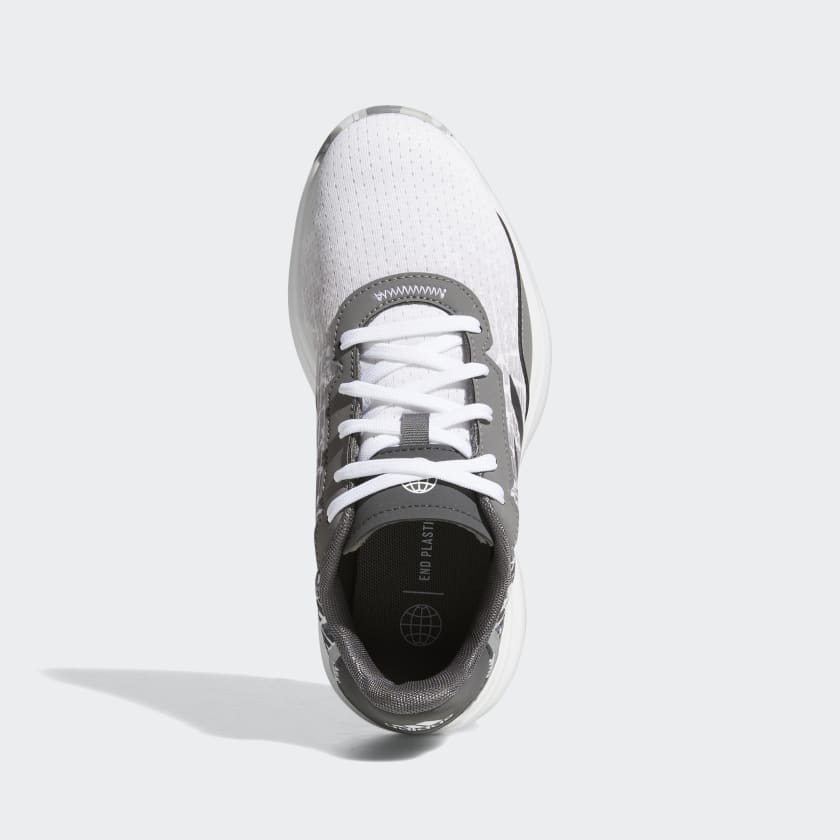 When playing a round at the course is just part of your busy day, these juniors' adidas golf shoes have you covered. The Bounce midsole offers cushioning and flexibility for all-day comfort. The spikeless V-Traxion outsole delivers solid grip on variable terrain and versatility for your postgame activities. The waterproof upper keeps your feet dry on damp fairways, and reflective details finish the look. Made with a series of recycled materials, this upper features at least 50% recycled content. This product represents just one of our solutions to help end plastic waste.