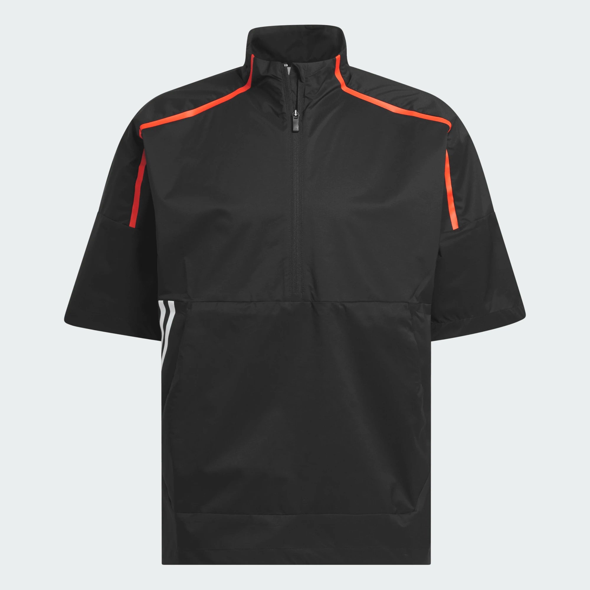 Keep your golfing standard high regardless of the weather with this adidas men's Core Provisional short sleeve half zip jacket. Made entirely from recycled PET, this sporty knit jacket combines sustainability with style and function. Its WIND.RDY technology ensures a shield against wind, ensuring you stay comfortable and focused on the course.