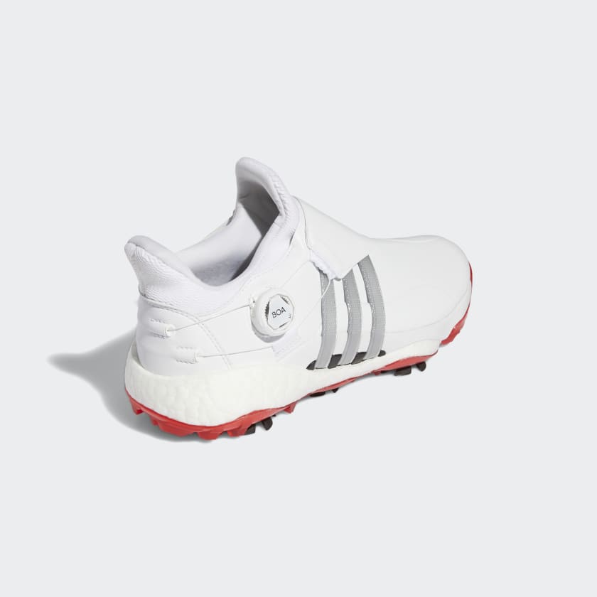 Take your performance to the next level in these adidas golf shoes. They feature a BOOST midsole that returns energy with every step. The 360Wrap design locks in and supports your feet through 18 holes and beyond. The BOA® Fit System lets you micro-adjust the fit, and the SPIKEMORE traction outsole delivers solid grip throughout your entire round.