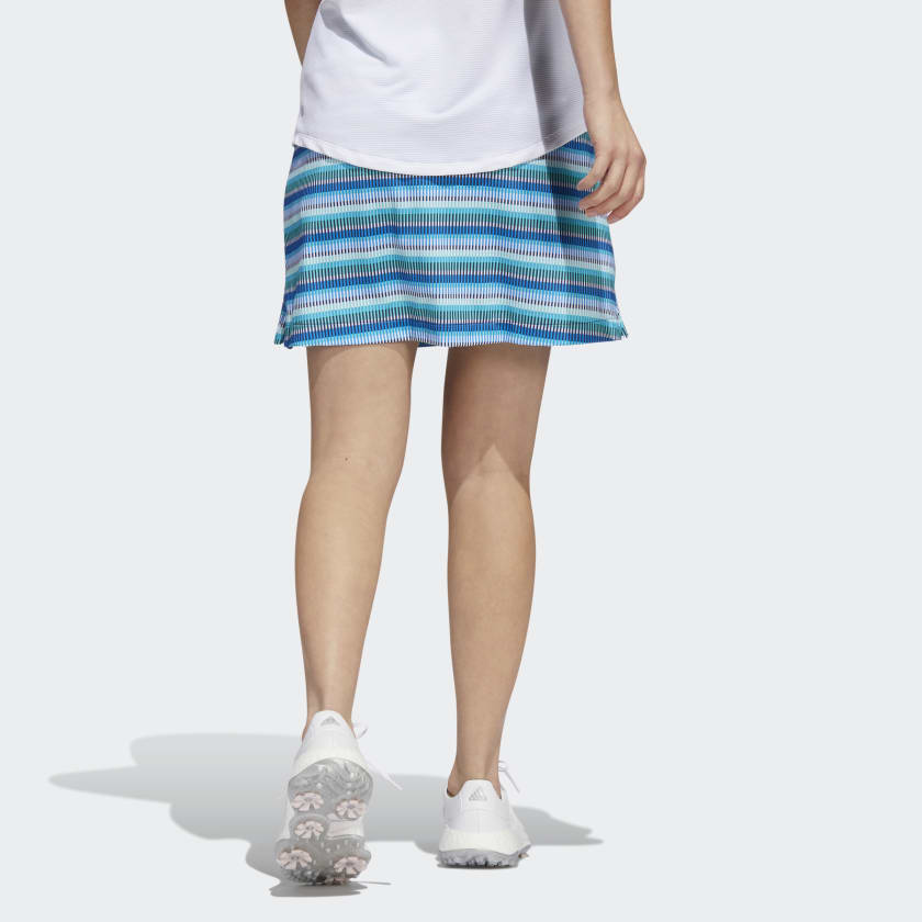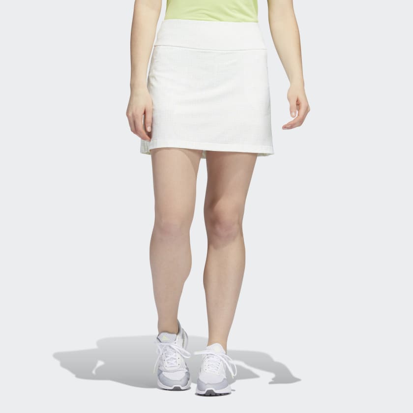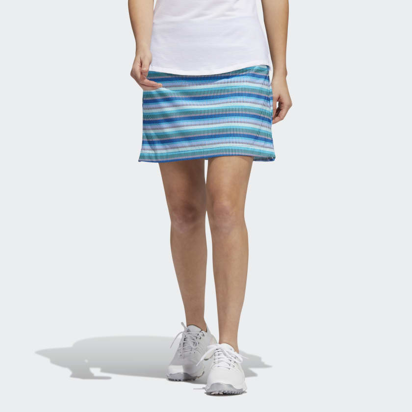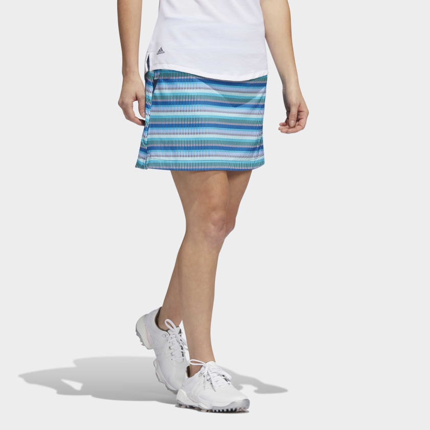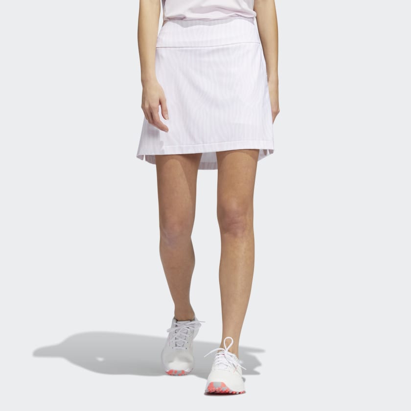 For year-round comfort and performance on the links, this adidas golf skort has you covered. The stretchy fabric is made with AEROREADY to manage moisture and keep you dry. The wide power-mesh waistband offers a supportive fit, and the undershorts have grip tape on the leg hems for a stay-put feel. Front and back pockets stash extra balls and tees, and built-in UV coverage shields you from the sun's rays on blue-sky days. The eye-catching allover graphic levels up your look on the course and beyond.