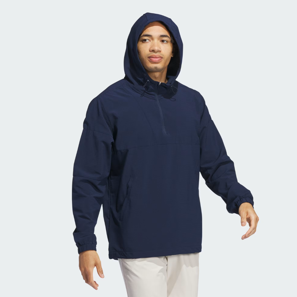 Unpredictable weather is part of the game. Be prepared for it in this adidas golf pullover. Stretch fabric with a fleece back gives you a full range of motion plus added warmth in cool conditions. A cinchable hood and elastic cuffs seal out the chill. From casual rounds to tournament play, the clean style has you covered.