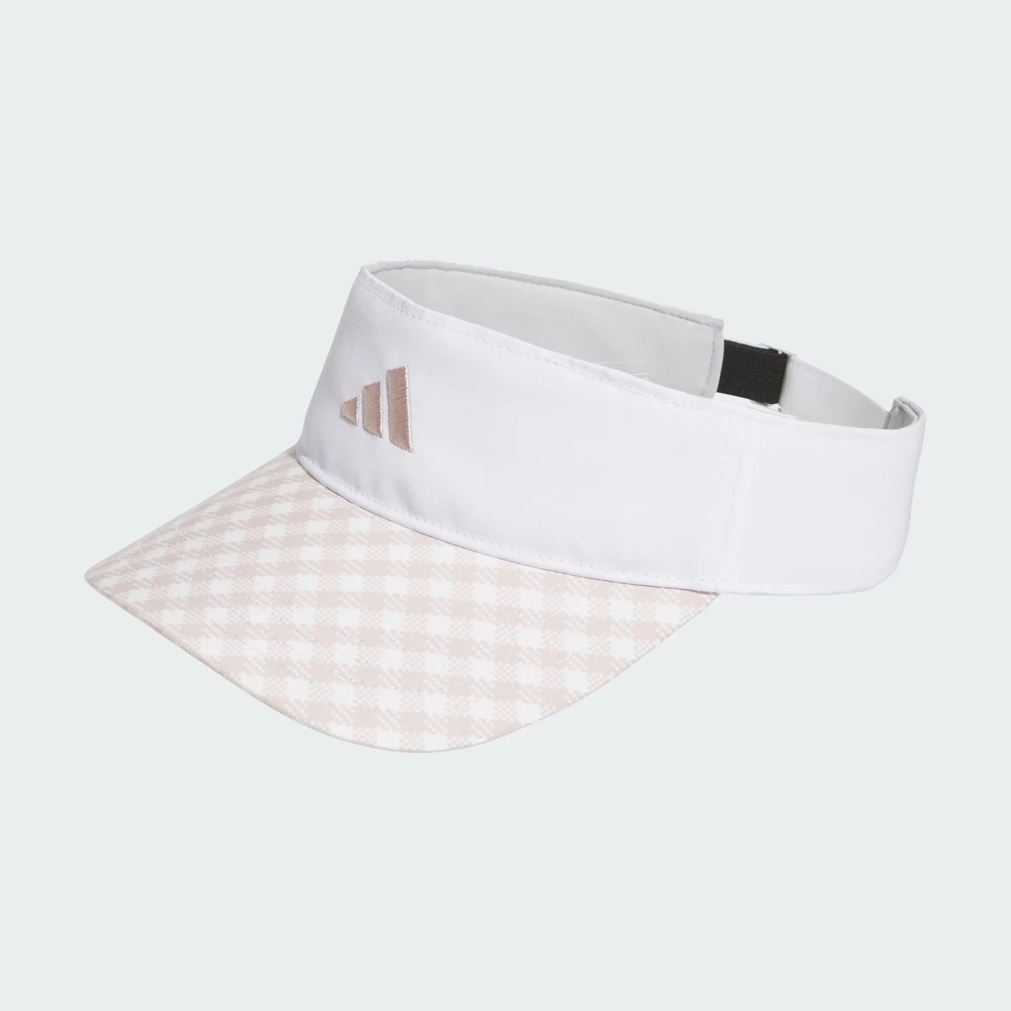 Shield your eyes from the sun's glare in style with the Tour Gingham Visor. This adidas visor is designed for golfers who appreciate a blend of tradition and innovation. The moisture-wicking sweatband provides a soft fit and absorbs moisture, while the 3D Badge of Sport logo adds a bold touch of branding. Made with recycled materials.