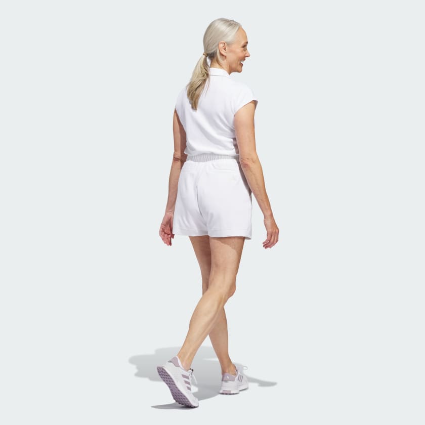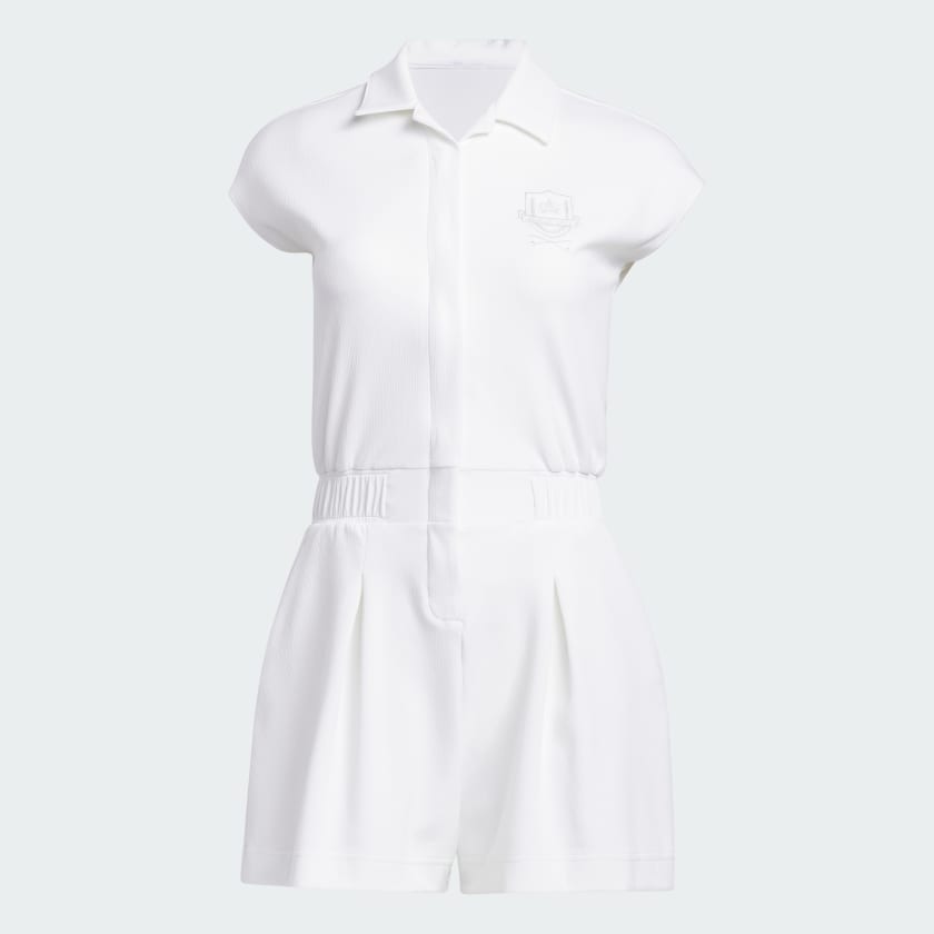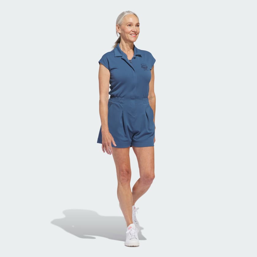 Bring your own style to the course. Channeling retro vibes, this adidas golf romper combines shorts and a shirt into a single outfit. Its easy-moving comfort and flattering fit lets you move between a morning round and afternoon social gathering without missing a beat. There's just enough stretch for an unrestricted feel, and plenty of pockets for everyday convenience. This product is made with at least 70% recycled materials. By reusing materials that have already been created, we help to reduce waste and our reliance on finite resources and reduce the footprint of the products we make.