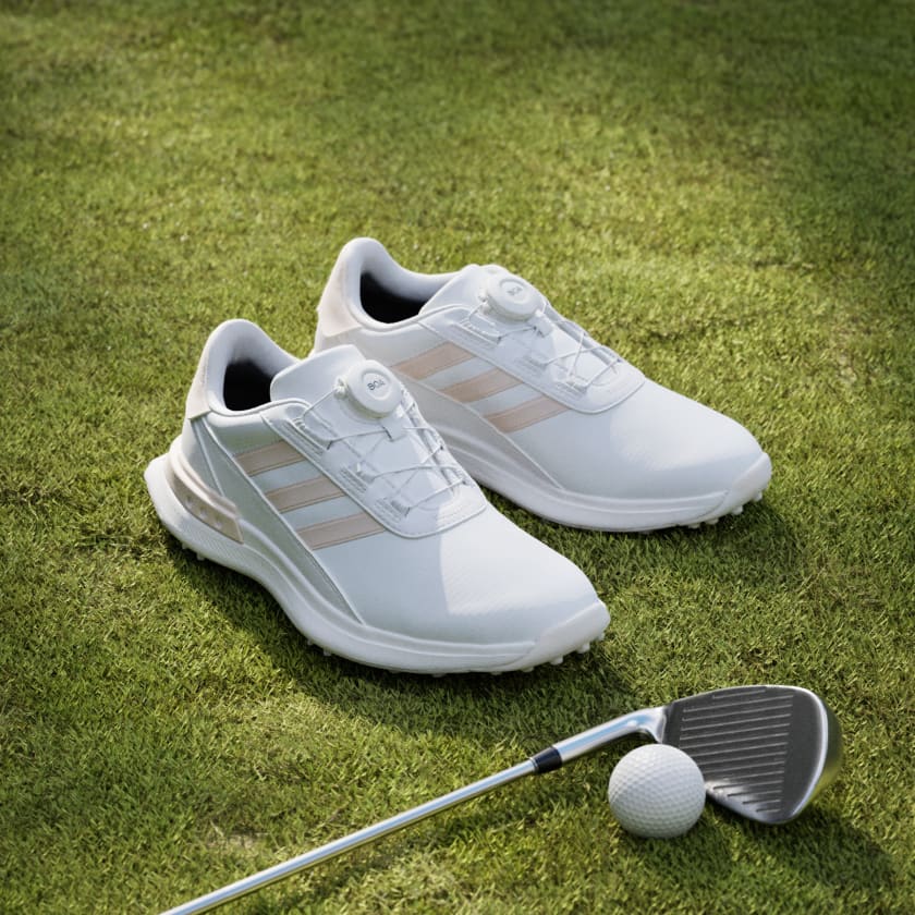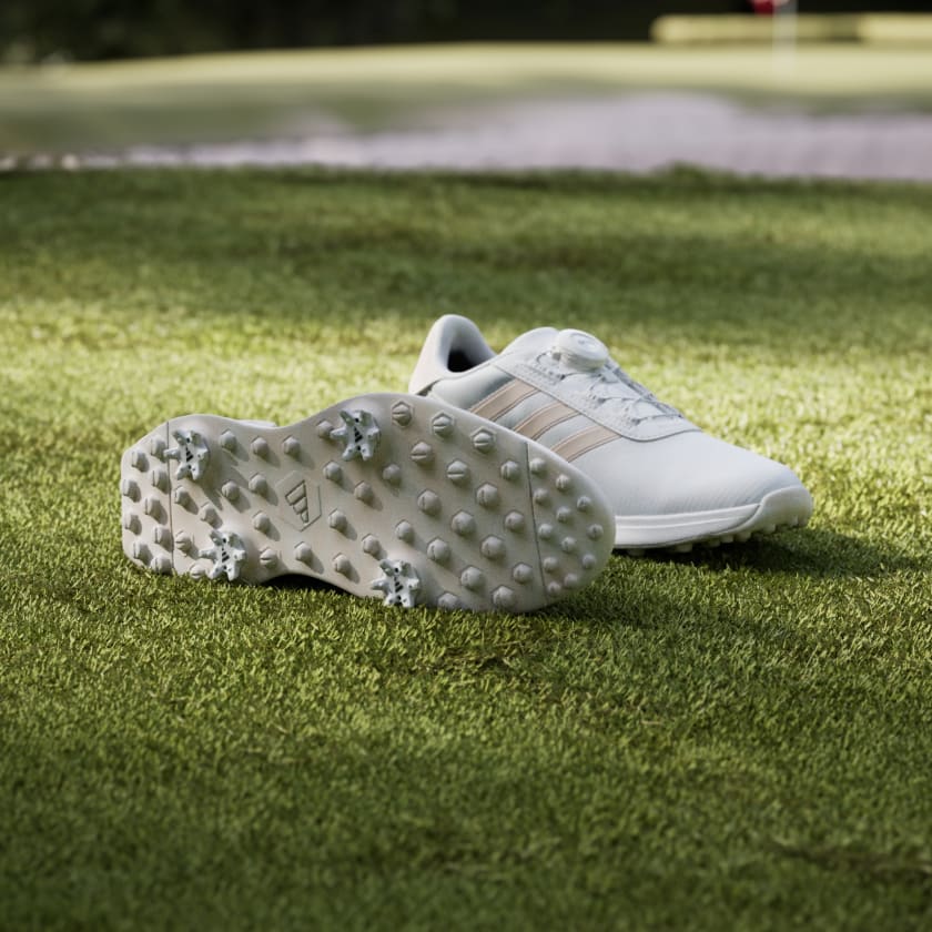 Perfect for a quick, casual round of nine or competing in a tournament, these spiked adidas golf shoes cover any terrain with ease and anchor you to the turf when you take your stroke. Lightweight, responsive midsole foam cushions and supports for hours on your feet, while the BOA® Fit System lets you quickly dial in a custom fit. The rugged Adiwear outsole gives you durable traction from the green to the rough, and the waterproof upper fends off the effects of wet grass. By choosing recycled, we are able to reuse materials that have already been created, which helps to reduce waste. Renewable materials choices will help us to remove our reliance on finite resources. Our products made with a blend of recycled and renewable materials feature at least 20% total of these materials.