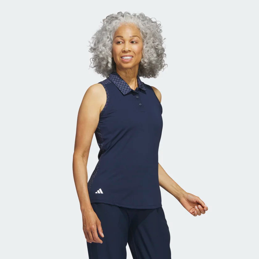 Make every day on the course count. This adidas golf polo shirt levels up your look with abstract-print accents and a feminine silhouette. Four-way stretch gives you full mobility as you swing and flex your way to a low score. Made with a series of recycled materials, and at least 70% recycled content, this product represents just one of our solutions to help end plastic waste.