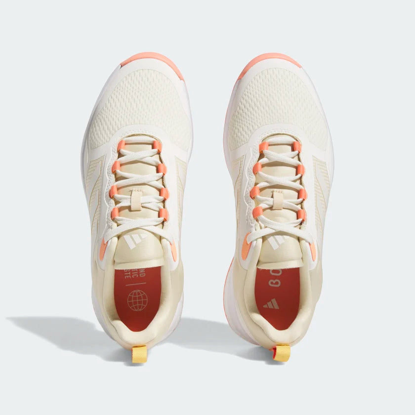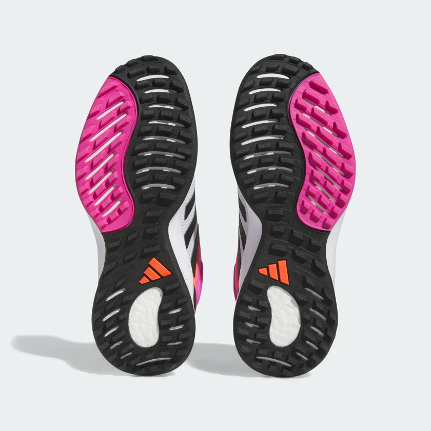 Bring confidence to your game in these comfort-driven adidas golf shoes designed just for her. Created with versatile running shoe-inspired comfort, the upper uses a mixture of materials and textures for just the right look and feel. Built on a spikeless rubber outsole, the shoes let you walk in comfort, swing with confidence and roam beyond the course in effortless style. They're made for golf on your terms — comfortable, energized and ready for post-round socializing. Made with a series of recycled materials, this upper features at least 50% recycled content. This product represents just one of our solutions to help end plastic waste.