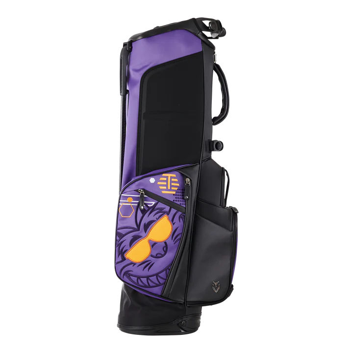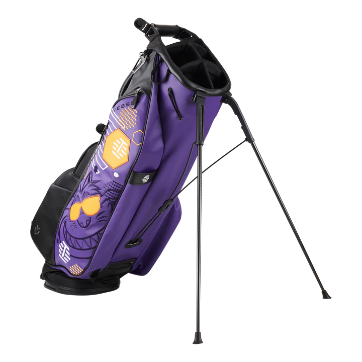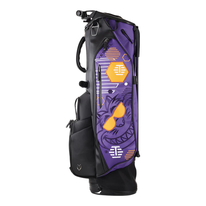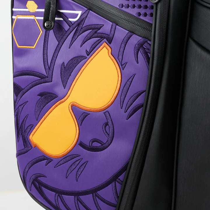 You’d be hard-pressed to find an icon who loves Transfusion™ quite like Fat Cat, so we had to bring him in on this Hive release! This limited custom Player IV stand bag was put together by our friends at Vessel and features our Sunglasses Fat Cat on both side panels and the strap along with T-Hives and Hexes throughout. This Player IV stand bag is made from Tour-grade synthetic leather with a purple base and black, white, and gold stitching. This bag has everything a golfer needs in a bag: 9 exterior pockets, 6-way club divider and internal lining, rain hood, double carrying strap, and more. Given the stunning appearance and hyper-functionality, there’s not much more you can ask for in a bag. Limited quantities are available.
