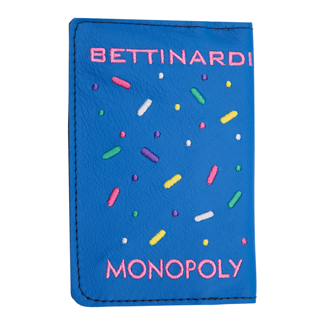 Sweeten the deal with this delightful scorecard holder! Mr. Monopoly is cruising through a shower of sprinkles, ice cream cone in hand—bringing a scoop of luck (or maybe just a tasty treat?). Stitched on a vibrant blue base and sprinkled with color, this scorecard holder is a tribute to the joy of summertime and classic ice cream shop fun. Limited quantities available. Good luck!