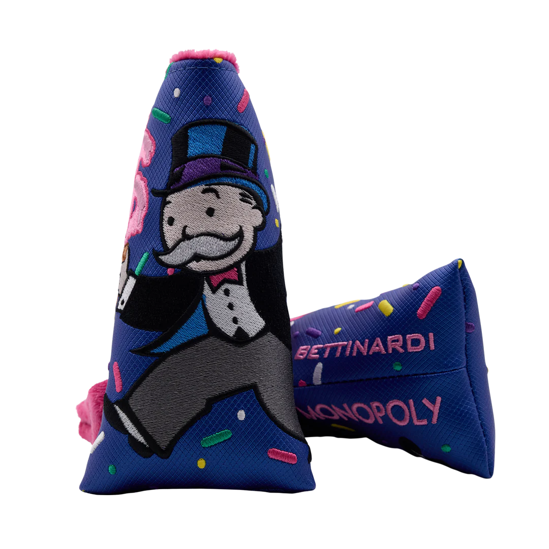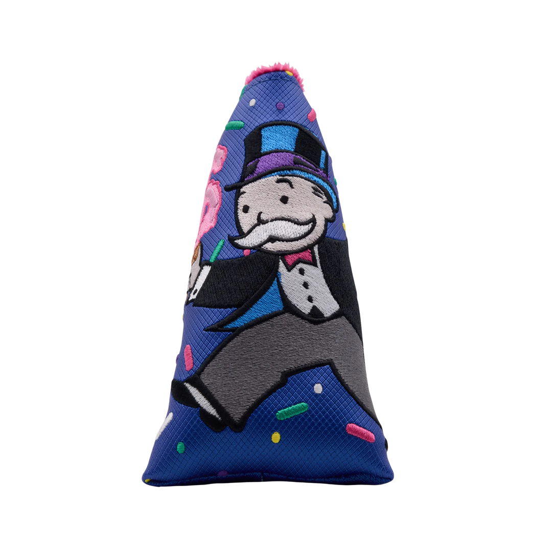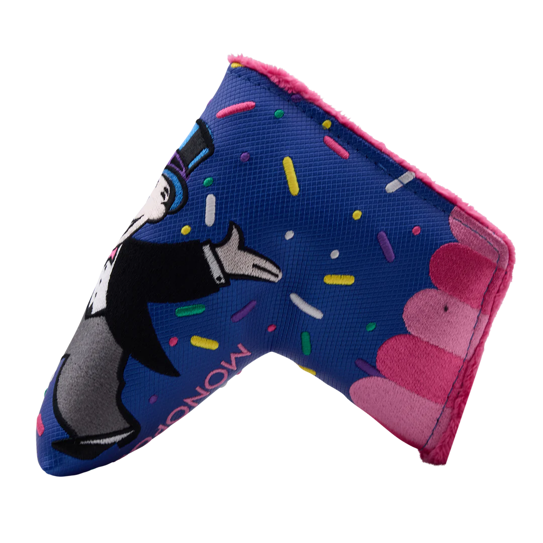 Sweeten the deal with this delightful headcover! Mr. Monopoly is cruising through a shower of sprinkles, ice cream cone in hand—bringing a scoop of luck (or maybe just a tasty treat?). Stitched on a vibrant blue base and sprinkled with color, this headcover is a tribute to the joy of summertime and classic ice cream shop fun. Finished with a plush pink interior and a magnetic closure to keep your center shafted mallet protected, this collectible is the cherry on top of your golf game! Limited quantities available. Good luck!