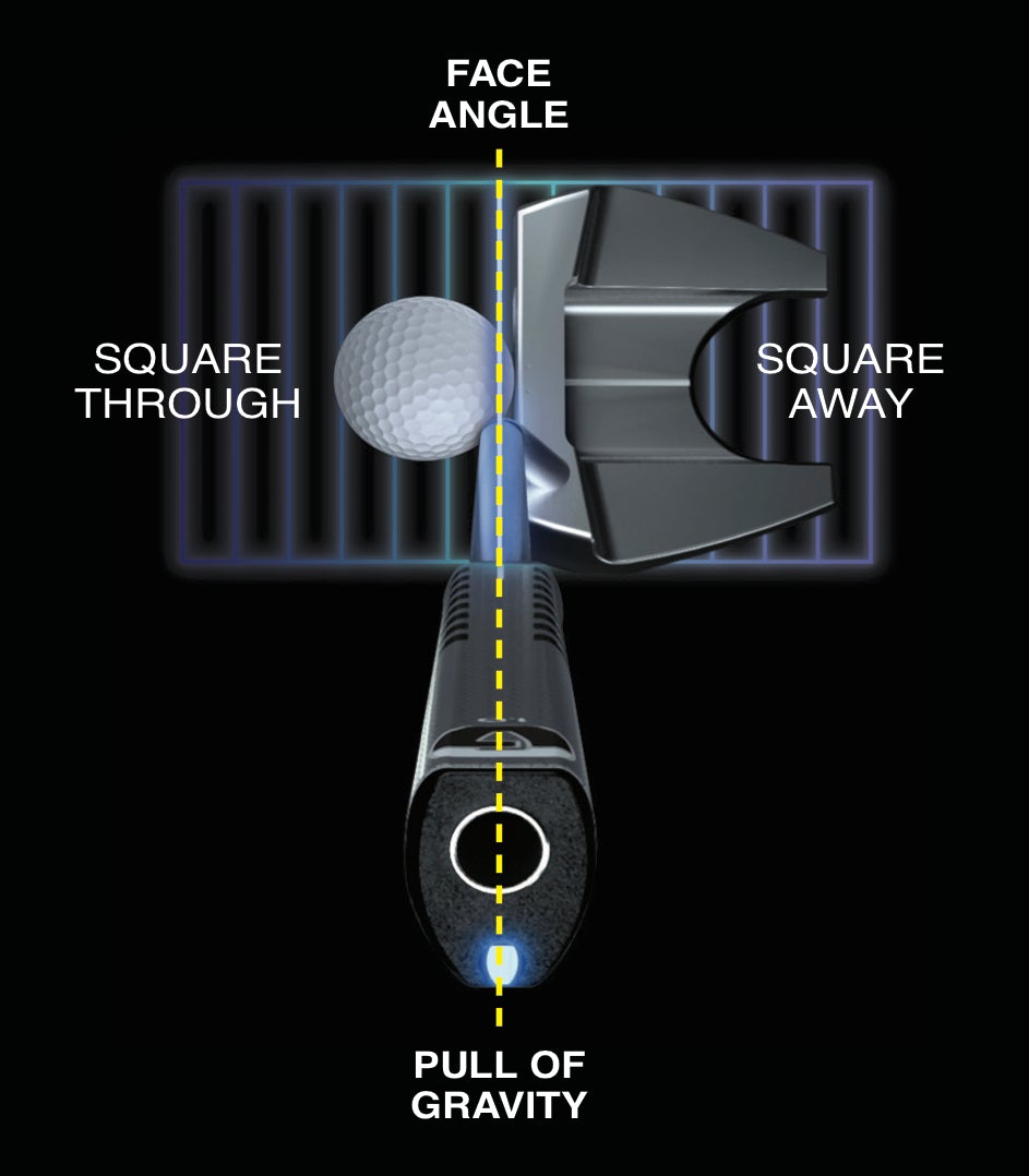 The Gravity Grip is a major breakthrough in putter grip technology. The body of the grip is ultralight EVA foam that weighs only 35 grams. By placing a 70 gram steel rod along the entire length of the grip ½ inch below the shaft, the hands can feel the precise angle of the face. The hands and the putter head are tied together creating a square zone before and after impact. Feeling is believing.