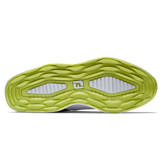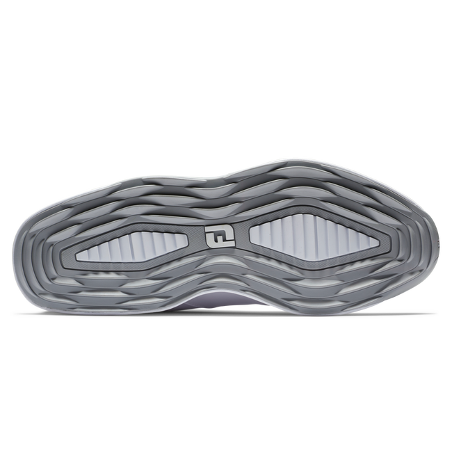 A DuraMax rubber Race Trak outsole uses specific traction elements to provide no-slip grip during every swing, on any lie.