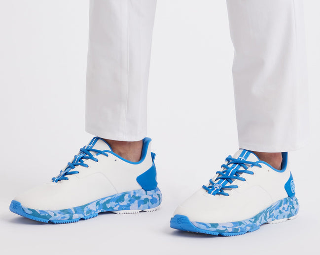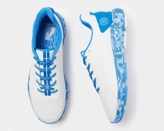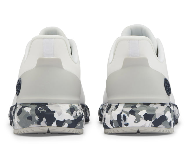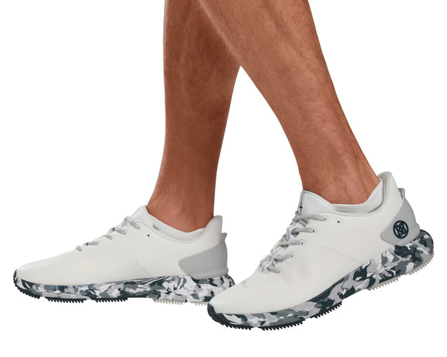 THE MG4+ IS THE IDEAL COMBINATION OF LIGHTWEIGHT COMFORT AND TECHNICAL PERFORMANCE. BUILT UPON THE CLASSIC NECESSITIES OF A GOLF SHOE, BUT WITH A MODERN PERSPECTIVE, THE MG4+ BOASTS THE SAME PROPERTIES OF THE MG4.1 WITH ITS WASHABLE, TRIPLE DENSITY FOAM CUSHION FOOTBED AND AUXETIC LATTICE MIDSOLE FOR REBOUND, PAIRED WITH A FULLY WATERPROOF EXTERIOR AND 3D MOLDED EXTERNAL HEEL CUP FOR ADDITIONAL SUPPORT. THIS STYLE ALSO FEATURES A BOLD CAMOUFLAGE OUTSOLE.