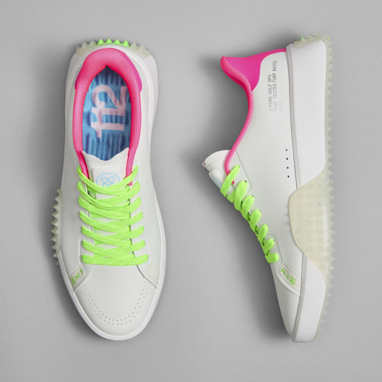 The modern G.112 golf shoe has a sleek silhouette and low drop design to enhance your connection to the ground. Equipped for optimal grip heel-to-toe turf traction, it's the go-to shoe for all day play with a comfortable eva midsole and mesh lining.
