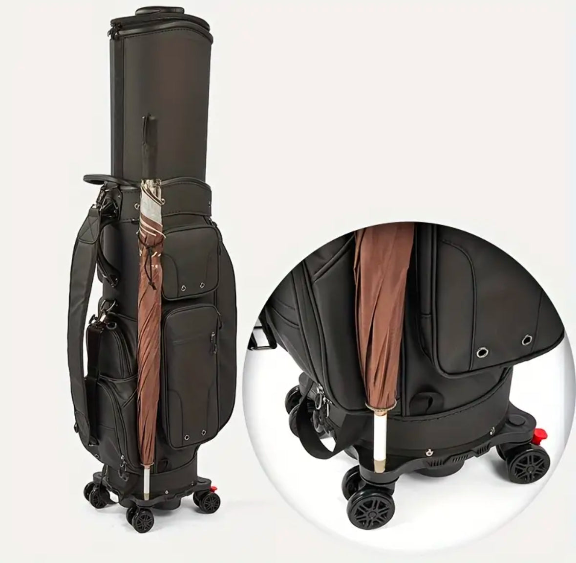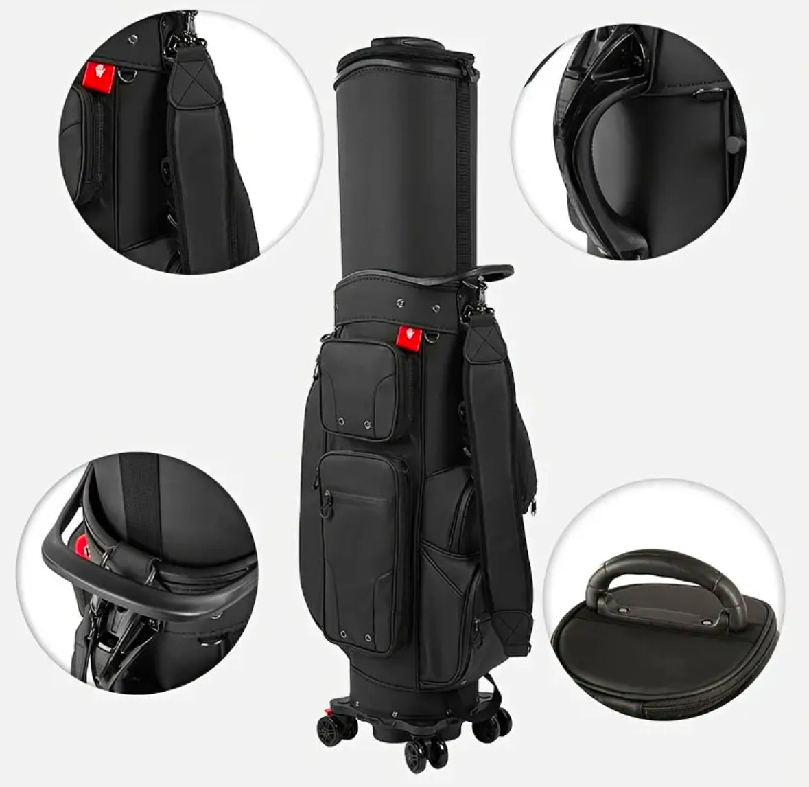 Tee off in style and confidence with our deluxe light-weighted 2 in 1 travel & cart golf bag. The hardshell exterior and water-resistant fabric protect your clubs from crush & moisture. With smooth 360° wheels, tee off right way from airport to tee box.