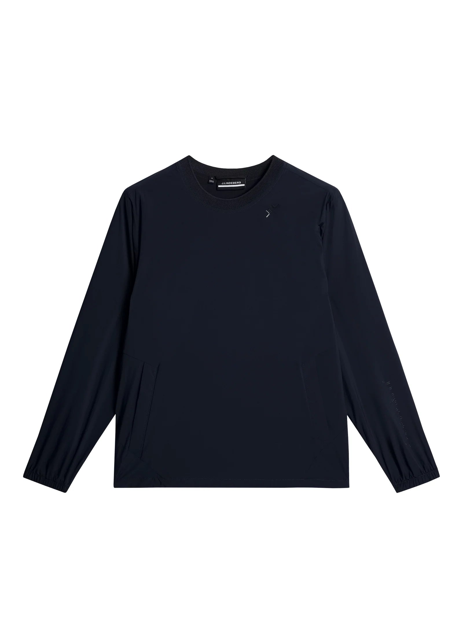 Stay shielded from the elements with the JL Pro Crew Neck Windbreak. This lightweight windproof layer features a round ribbed neck, convenient side pockets, and an adjustable drawcord hem for a customized fit. Its sleek design and brushed inside add a cozy feel on breezy days.