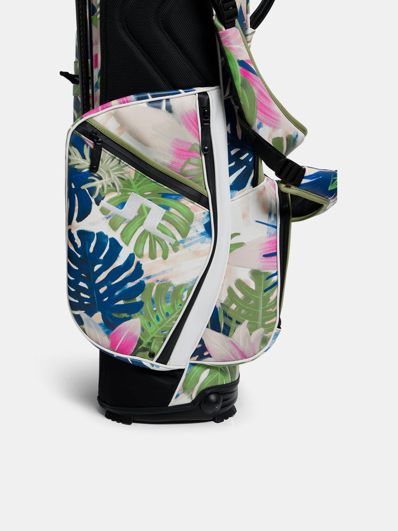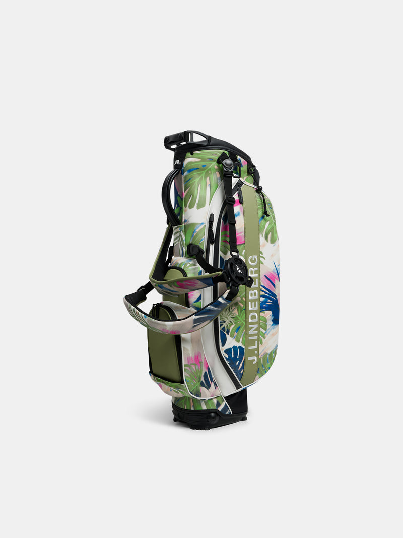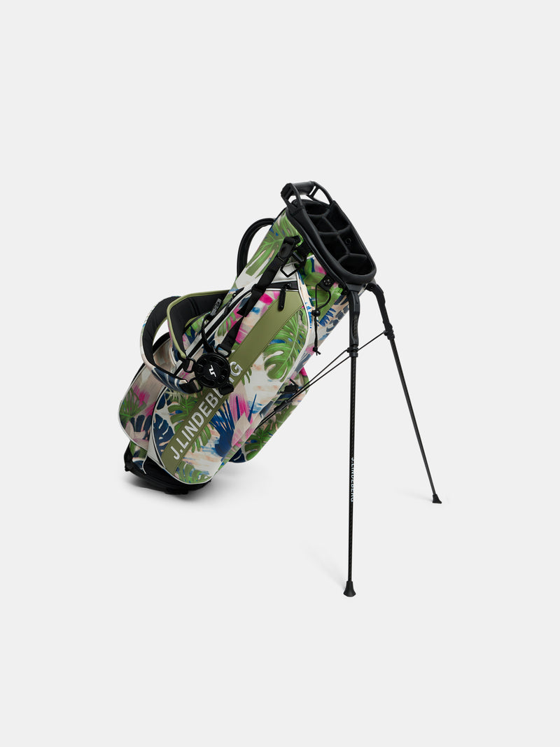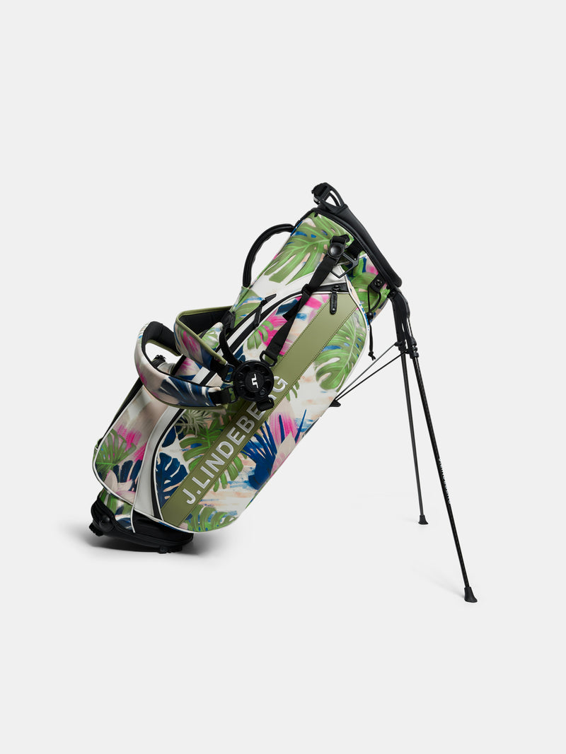 Play Stand Bag is a great companion for your golf game, featuring an all-over seasonal print. This lightweight bag is designed for easy portability with its double straps, allowing you to carry it effortlessly. Fold-out, carbon fiber legs keep it steady on any surface, and the six-way top dividers safely secure your clubs. Crafted for exceptional durability, weather resistance, color fastness, and easy-to-clean properties, this bag is sure to turn heads on the green.