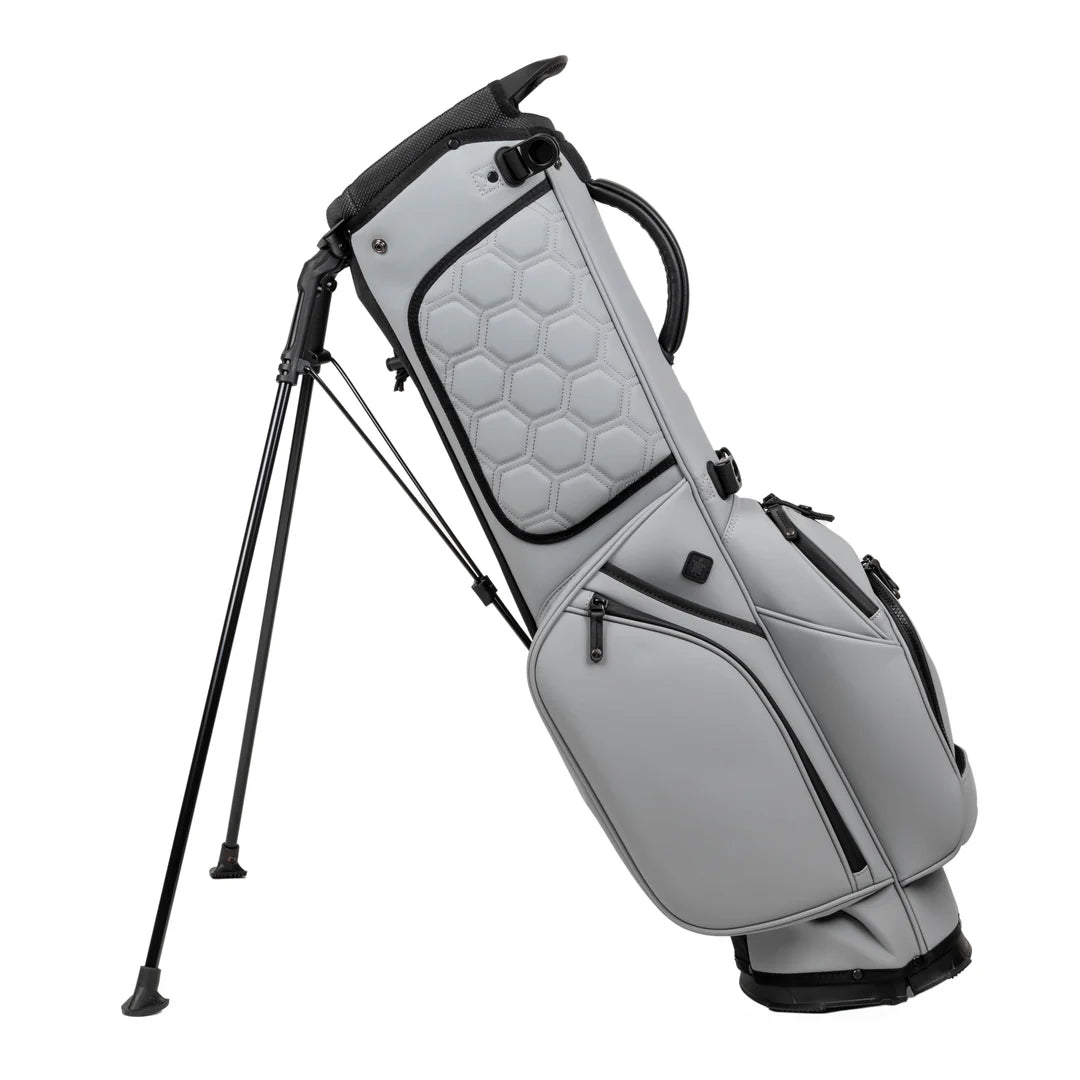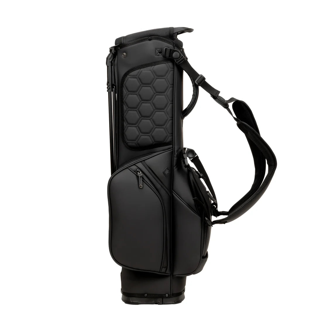 Everything about this collection screams luxury. A combination of tonal logos, artfully placed in both silicon and stitch, delivers a clean look waiting for any personalized embellishments on its removable front decoration panel. The 7.5” Carry Bag offers the ultimate in versatility, enabling players to walk, push, or ride with a set of features to compliment each other in a slimmed down version of the Hybrid Stand and a 4-way top with room for all 14 clubs.