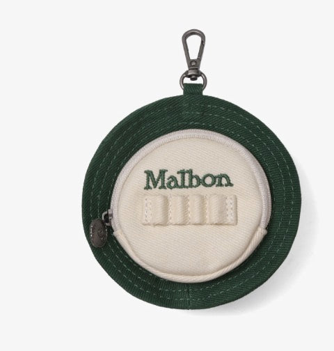 Introducing the Malbon Golf Buckets Ball Case, uniquelydesigned in the shape ofa Bucket Hat with a durable 100%cotton shell. Featuring a Buckets logo on top, Malbonembroidery on the back, and equipped with a zippered pocketand four-slot tee holder, it also includes a metal clip for easyattachment to your golf bag, combining style and functionalityon the course.