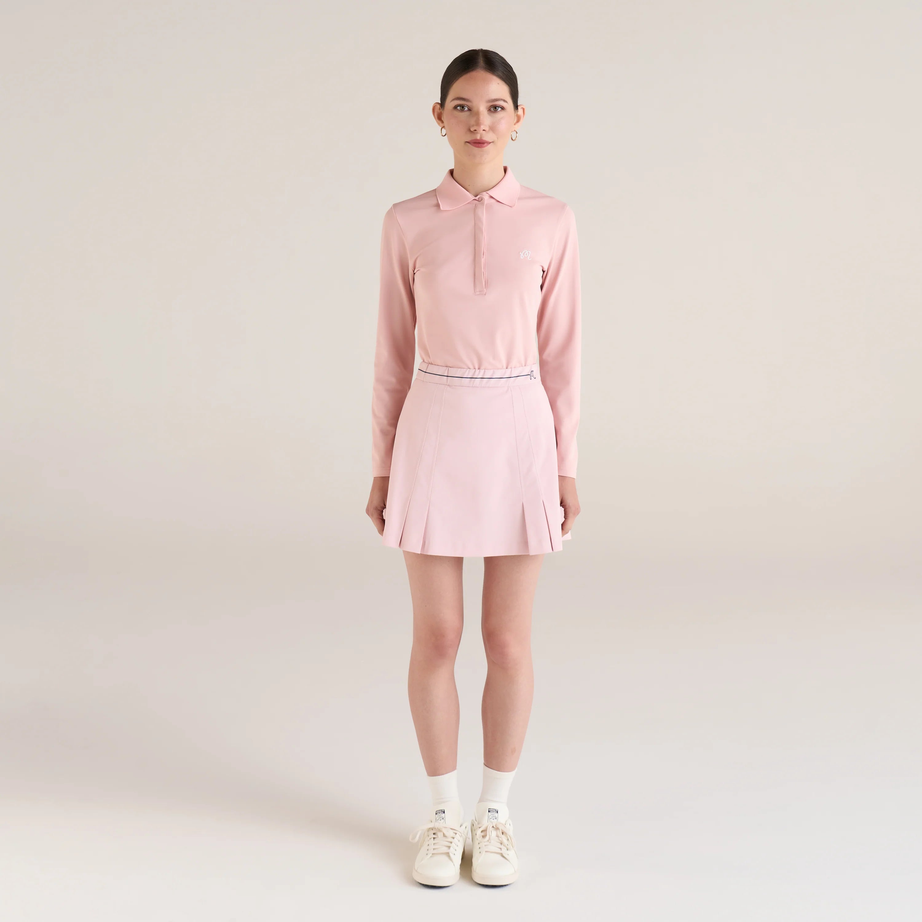 Elevate your golf attire with the Frida Women's Pleated Skirt from the Malbon Women Spring '24 Collection. This sophisticated piece boasts an invisible zipper closure at the left hip secured with a metal hook and eye, ensuring a sleek fit. Complete with the iconic M Script at the waistband. The perfect piece to keep you stylish after a long day out on the course or on the go.
