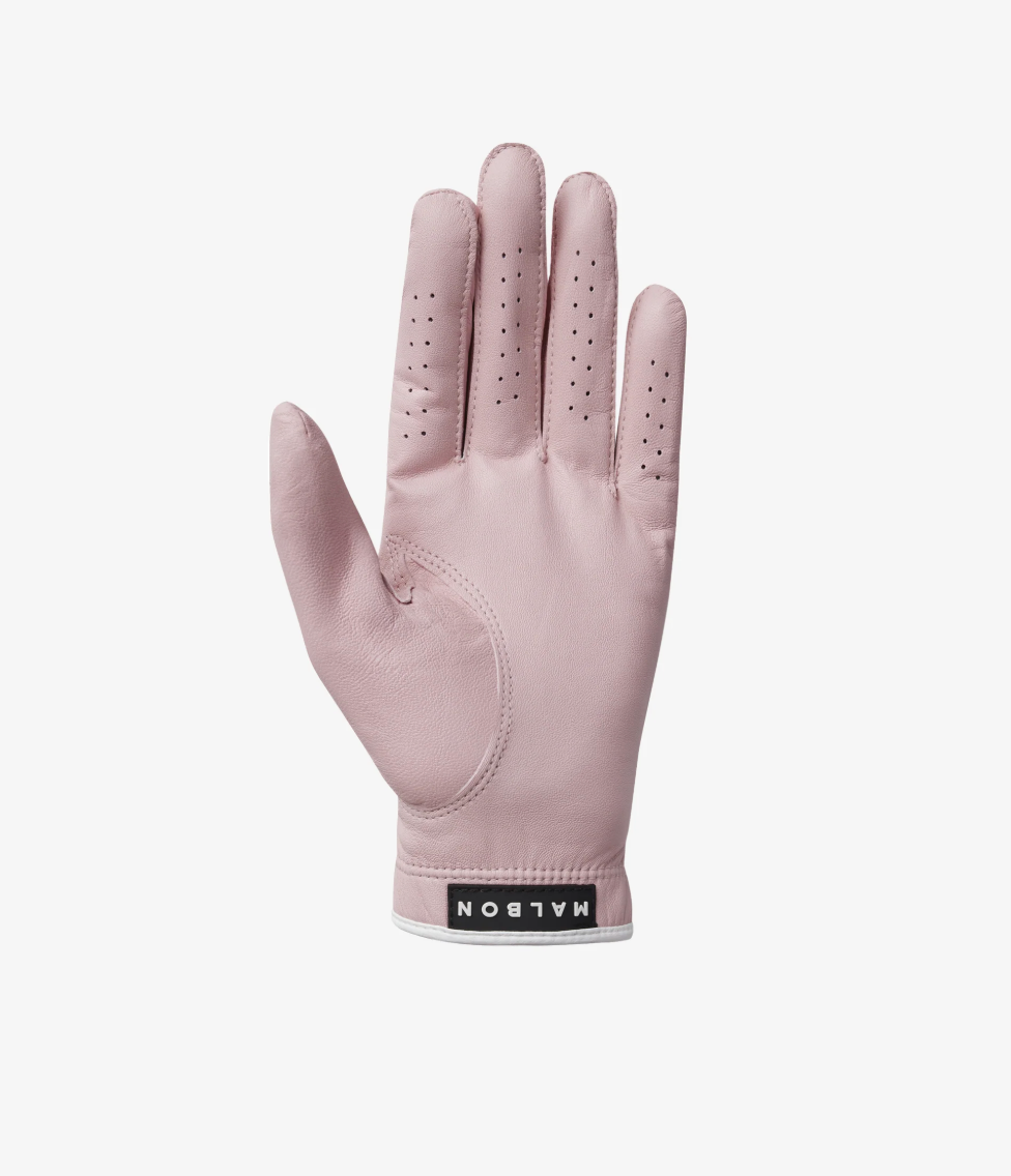 The Manuela Glove is crafted from ultra-soft Cabretta leather and features a meticulous stitching forming the iconic M Script logo atop. Includes a magnetic removable M Script ball marker attached on the closure flap and adorned with a 3D rubber Malbon logo patch on the center cuff. Offered in Dusty Rose with contrasting white trim. The Manuela Glove not only elevates your game but also your style.