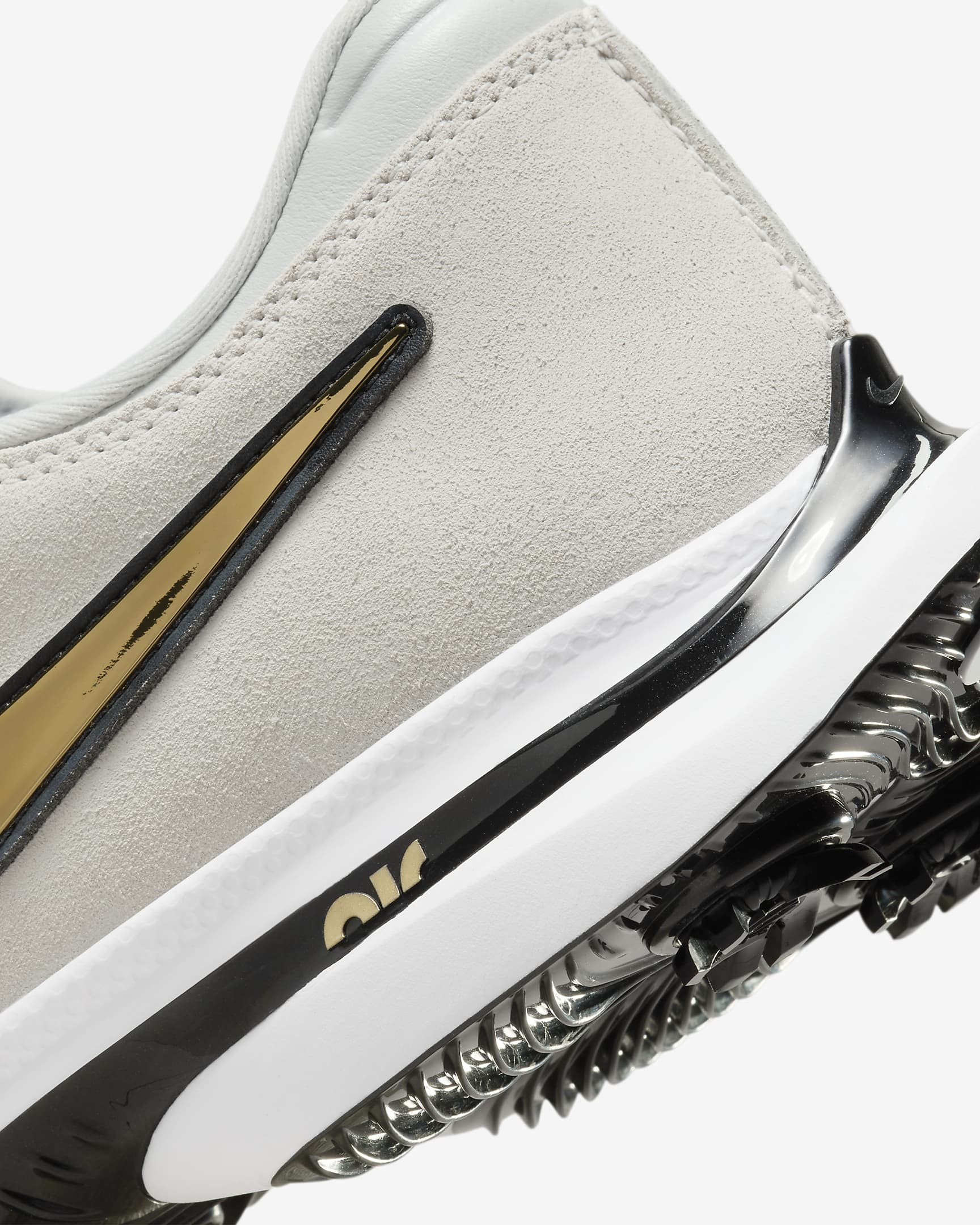 This special edition of the Victory Tour 3 celebrates the grind, the eternal pursuit of excellence. A gold Swoosh logo and metallic, medallion-like silvers provide a glossy finish to celebrate your rise from raw to refined. And to go with all that shine, you still get what makes this shoe so great: unreal energy return and spikes that are ready for 18 or more.