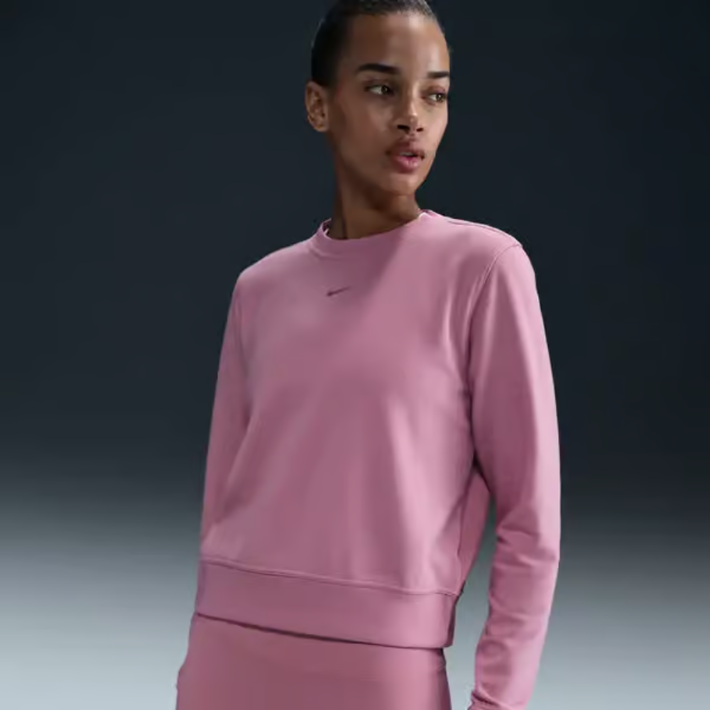 Style: FB5125; Color: Elemental Pink/Black; Size: M; Gender: Female; Age Group: Adult | Nike Dri-FIT One Women's Crew-Neck French Terry Sweatshirt in Pink, Size: Medium | FB5125-699