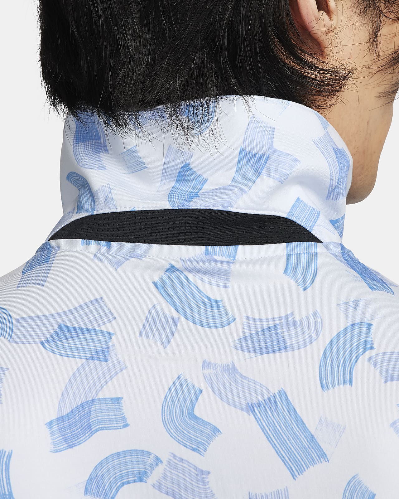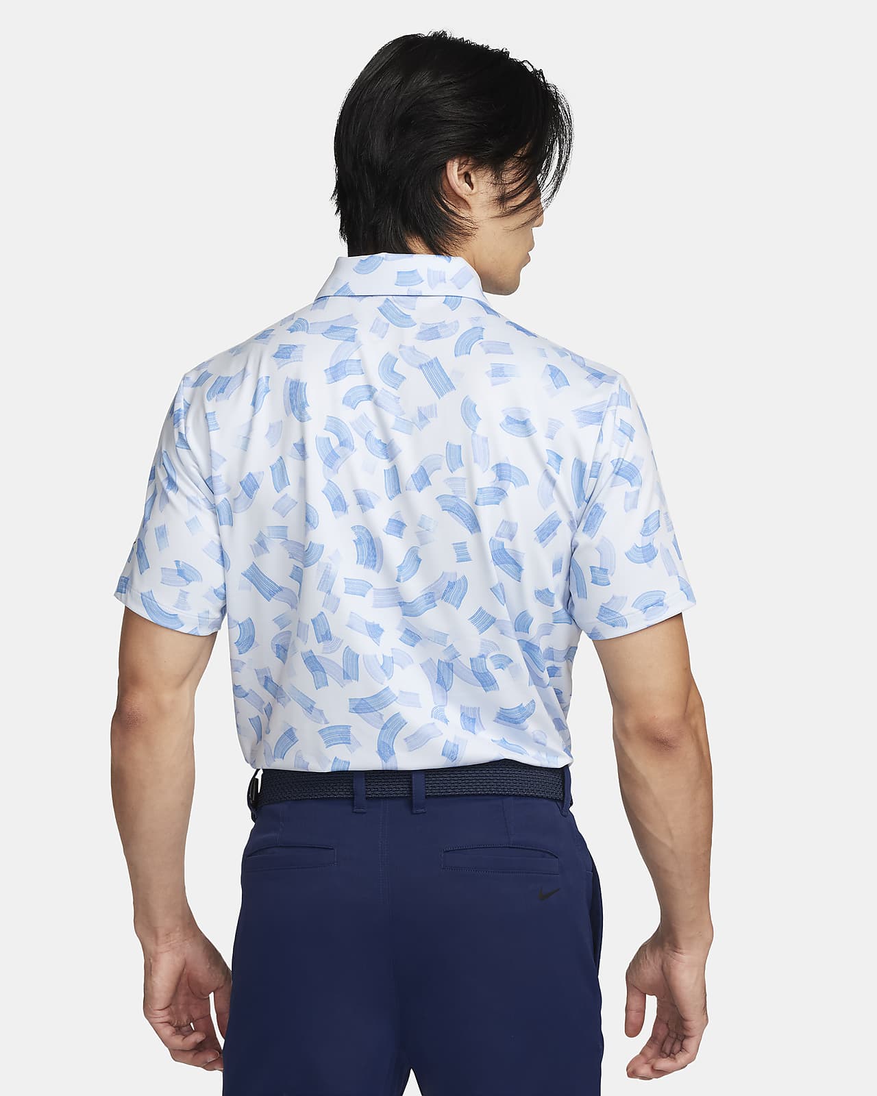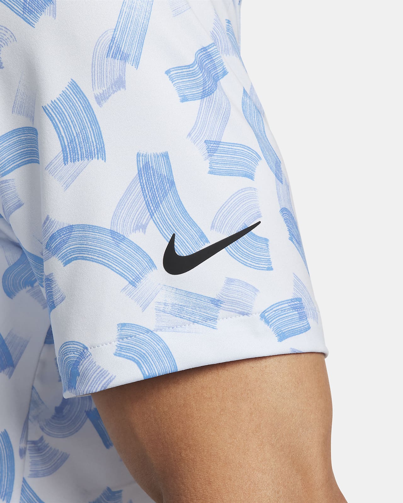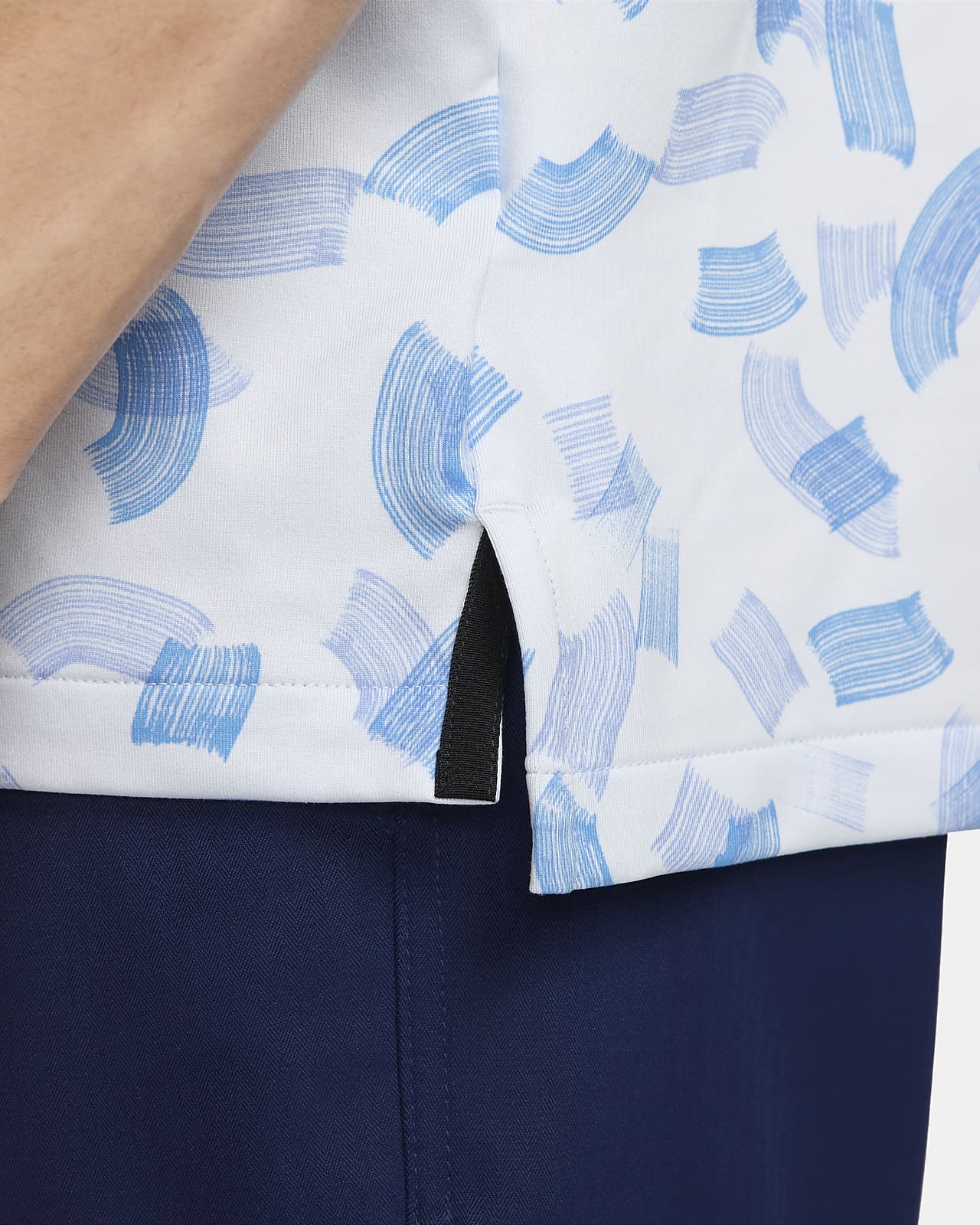 Focus on what matters, and never worry about what to wear with the Nike Tour Polo. Stretchy, sweat-wicking fabric with an odor-resistant finish helps you stay fresh through all 18 holes. It's extra breathable around the collar for cooling comfort. The print is inspired by the textures we see on the course—from rake lines to clumps of sand out of the bunkers. Just avoid the real thing, if you can.