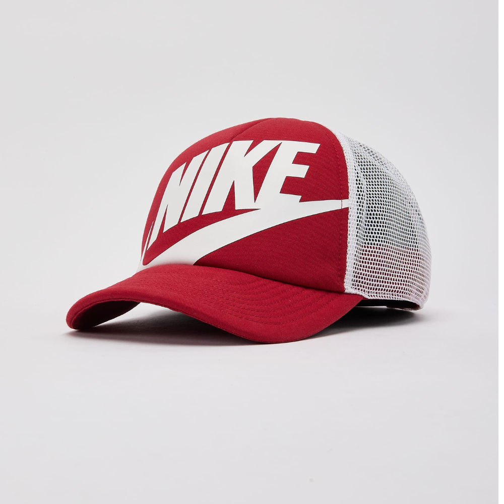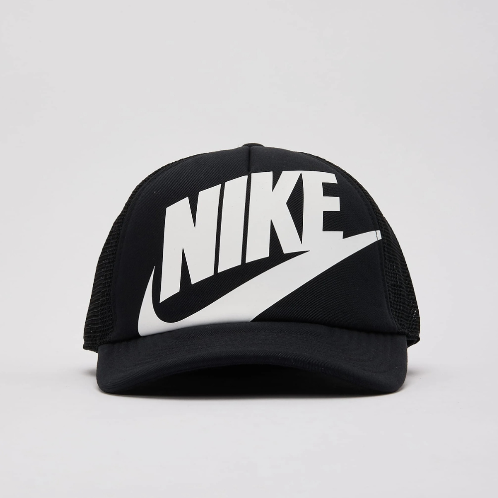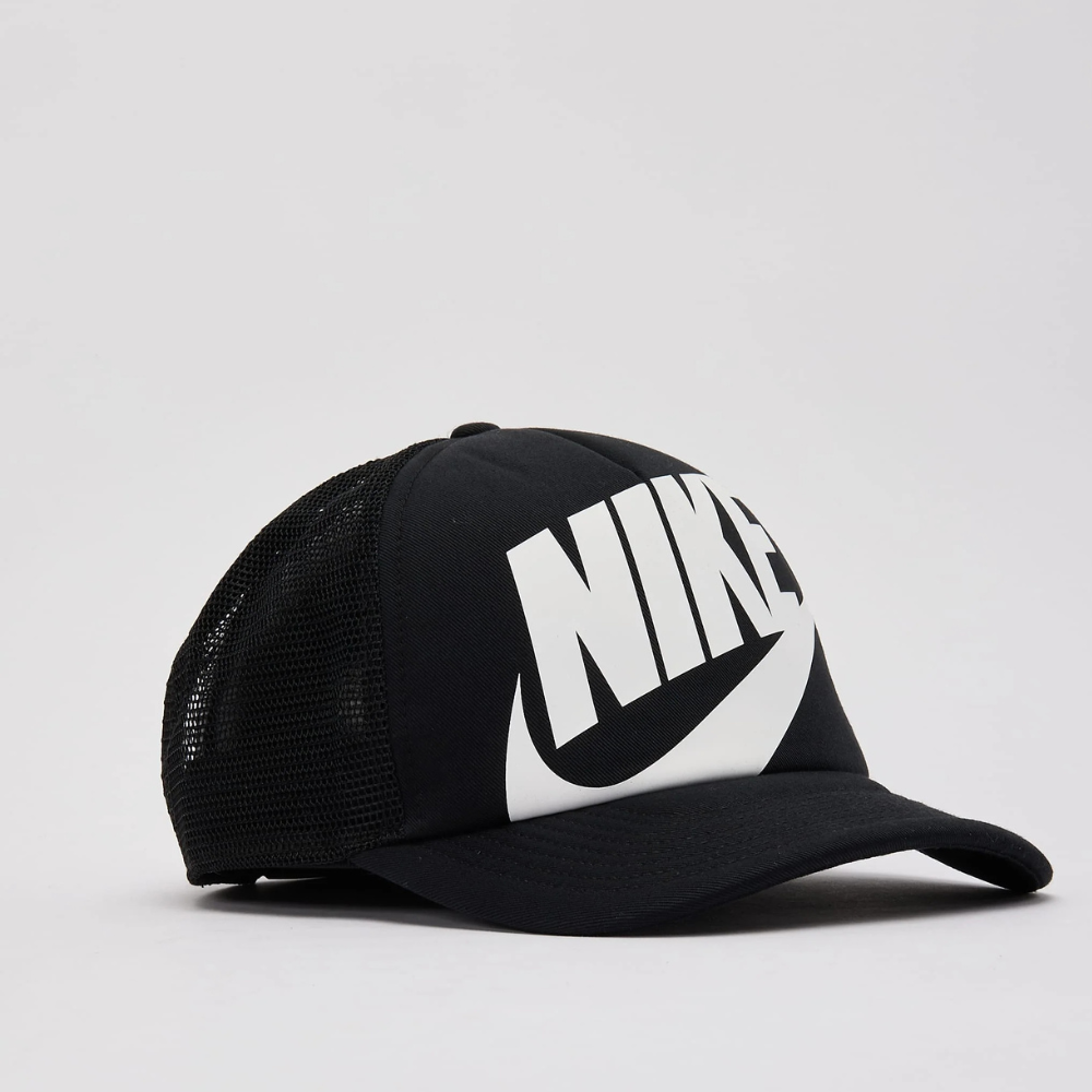 Accessorize your outfit with the Nike Rise Trucker Hat. This hat features a large Nike graphic printed on the front panel and an adjustable snapback closure.