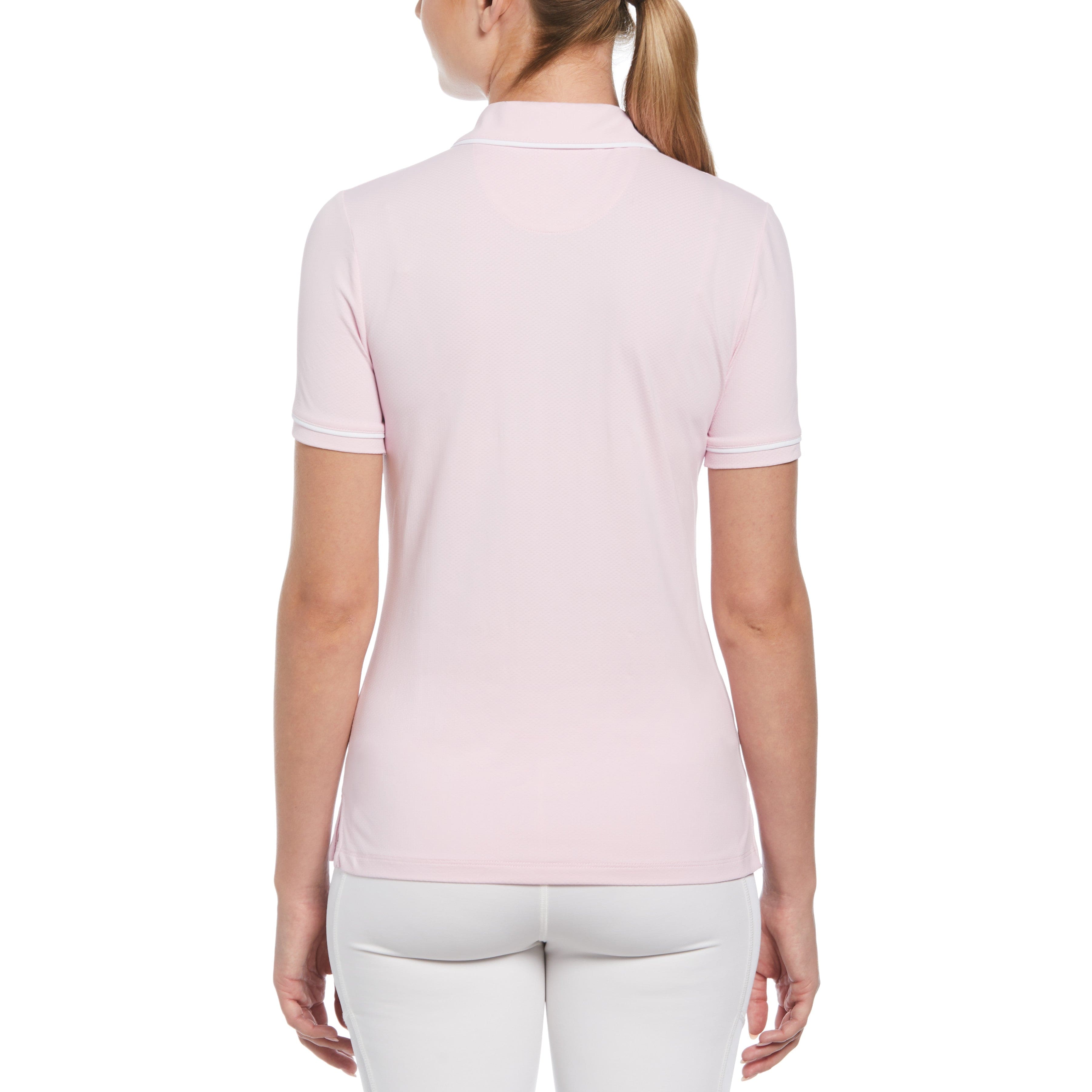 For an elevated look on the golf course, choose this women's golf polo shirt from Original Penguin. This golf top is made from pique fabric that features a subtle texture with contrast color piping to give your golf wear a stylish and refined touch. Built for comfort on the course as well, this golf shirt is finished with stretch for a full range of motion.