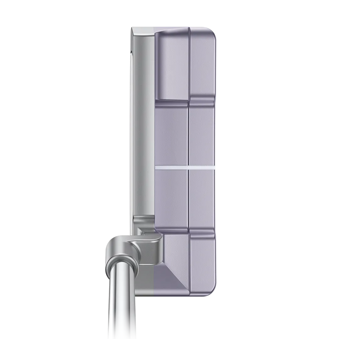 The slightly deeper, perimeter-weighted blade design of the G Le4 Anser 2D putter has similar weight, size and forgiveness of a mid-mallet putter. A single contrasting alignment line and clean heel-toe ballasts make aiming easier to inspire a confident stroke.