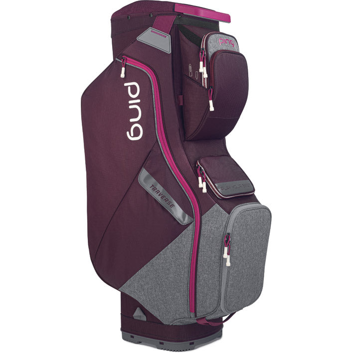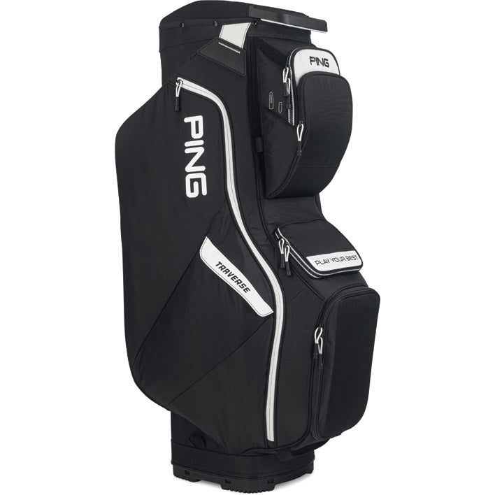 The new-and-improved, highly organized Traverse is ready to roll, offering a re-designed 14-way top that safeguards clubs, including the putter, which gets its own well. A rangefinder pocket with dividers is one of 15 pockets, which are easier to access due to its tiered pocket design. Its efficient design and construction results in a bag weighing only 6 lbs.
