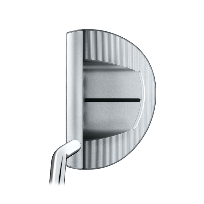 With its rounded compact mallet shape, Scotty Cameron's Super Select GOLO 6 is sized in between the previous GOLO 5 and 7 models and is designed with a mid-bend shaft for nearly face balanced performance. Precision milled from 303 stainless steel, the Super Select GOLO 6 has an integrated sole plate machined from 6061 aircraft aluminum. Seamlessly fused to the body, this configuration allowed Scotty to design more solid stainless steel into the face and perimeter, increasing MOI, balance and feel.