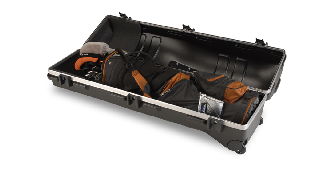 Made in North America, the SKB ATA Golf Travel Cases are made to ATA 300 Category I specifications which is the highest shipping container specification of the ATA. These cases are molded from ultra-high molecular weight polyethylene, the material specified by the U.S. military for cases and containers. Capable of accepting drivers up to 50" in length the SKB ATA Golf Travel Case series features unique Perfect Match Valance Bending System for a perfect seal and come standard with a lift handle, tow handle and wheels.