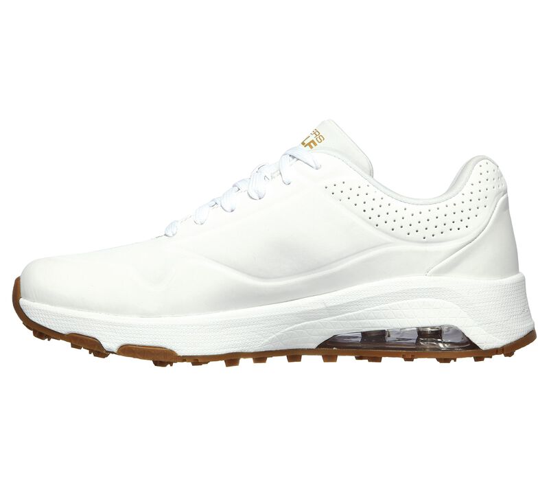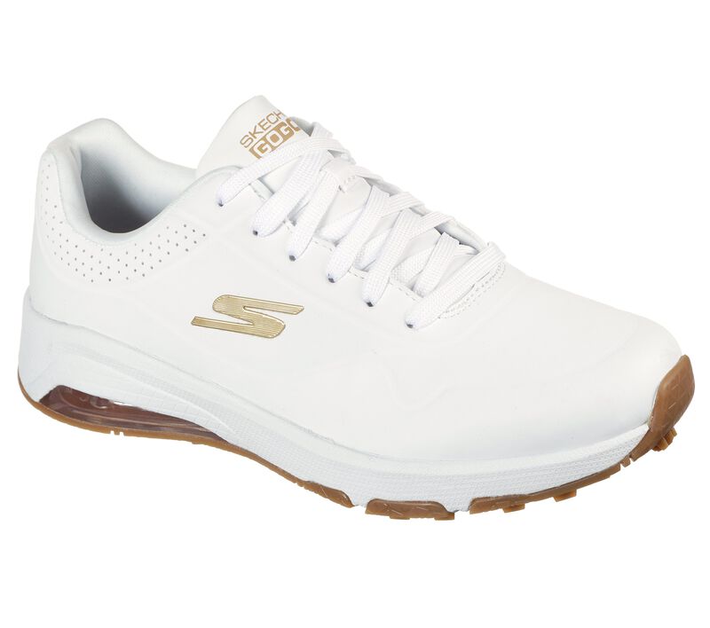Add some air-cushioned comfort to your game with the Skechers GO GOLF Skech-Air- Dos shoe. This lace-up golf shoe features a water repellent synthetic upper with a visible air cushioned midsole, Air Cooled Memory Foam insole and Spikeless traction outsole.