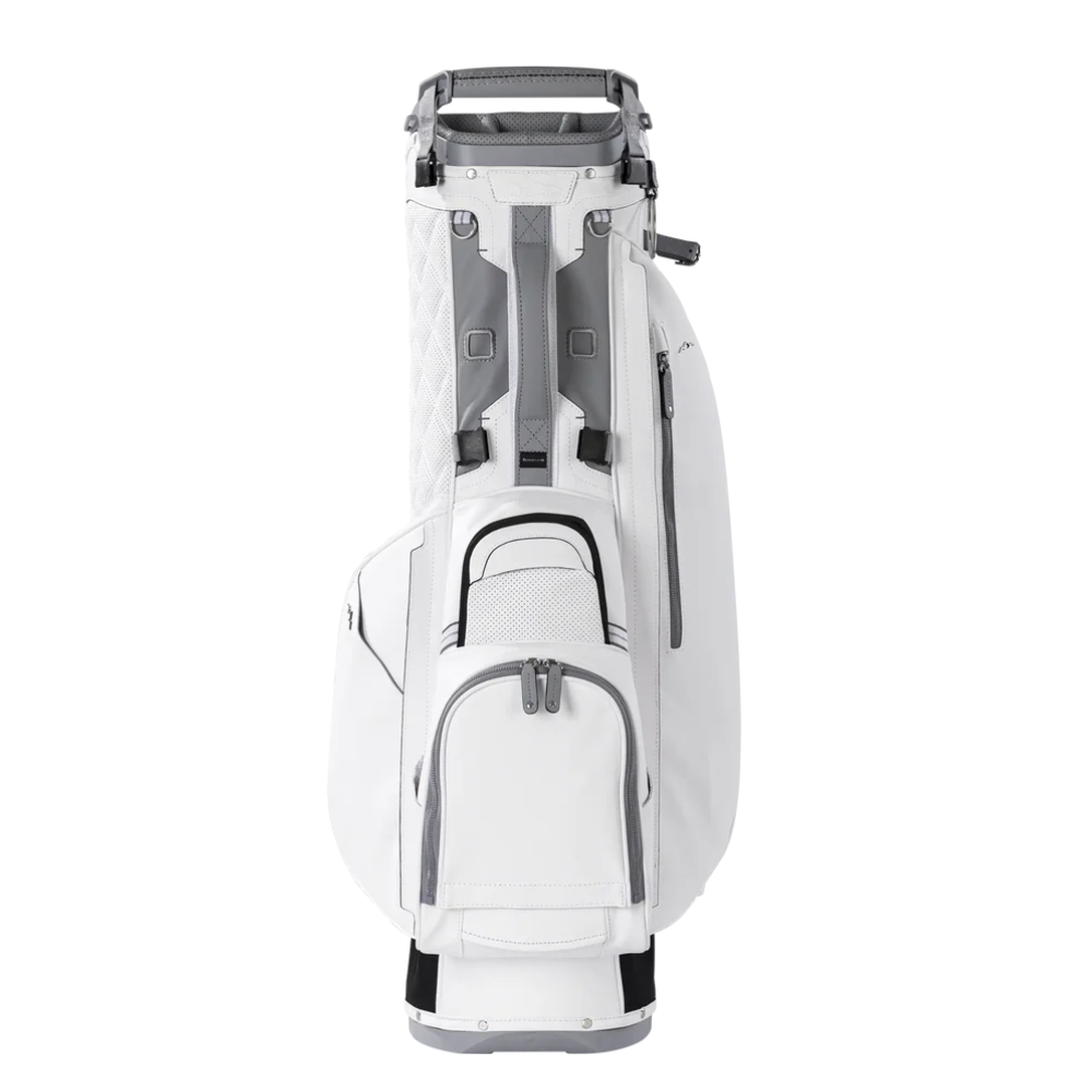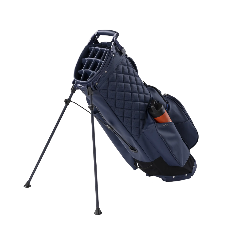 The dual strap system is engineered for comfort, distributing weight evenly for effortless carrying throughout your round. With nine strategically placed pockets, including a customizable zip-off ball pocket face and a customizable clothing pocket, this bag allows you to tailor your gear to fit your personal style. The internal compression bottom provides enhanced stability and protection for your clubs, ensuring they remain secure during transport. Designed for those who demand both sophistication and performance, this stand bag is your perfect companion on the course.