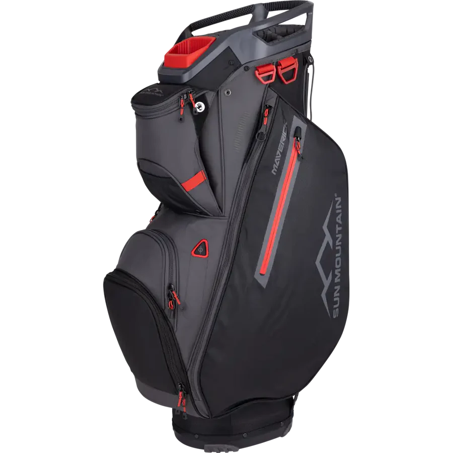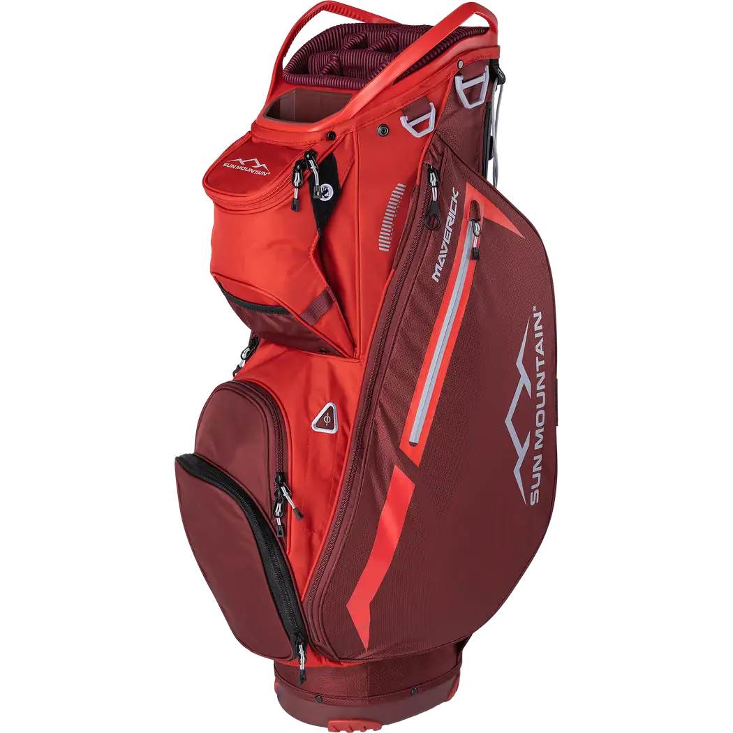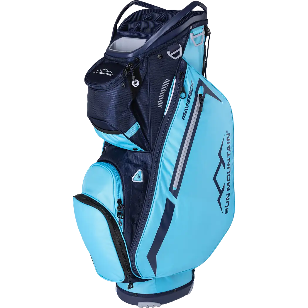 The Maverick is a lightweight, full-featured riding cart bag. For convenience, all pockets are front-facing, so they are accessible when the bag is on a cart and the top has two integrated lift-assist handles for lifting the golf bag on and off the cart. The full-length, individual club dividers protect clubs and prevent the migration of club shafts.