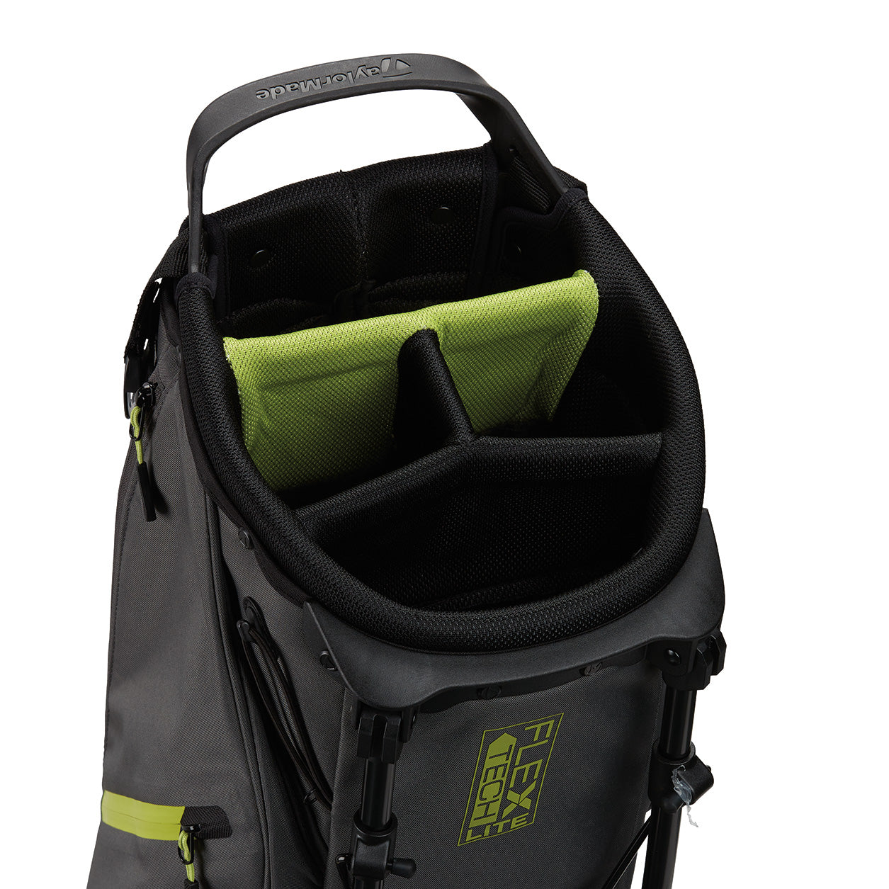 TaylorMade's most versatile golf bag has now been made lighter and more functional with upgraded features. Weighing just 3.9 lbs., it has a 4-way top with crush-resistant construction and the all-new Leg Lock Technology that keeps the legs from drooping or clattering while you walk. Our proprietary FlexTech stand system for seamless functionality that allows you to set the bag down and set up for your shot without distraction.
