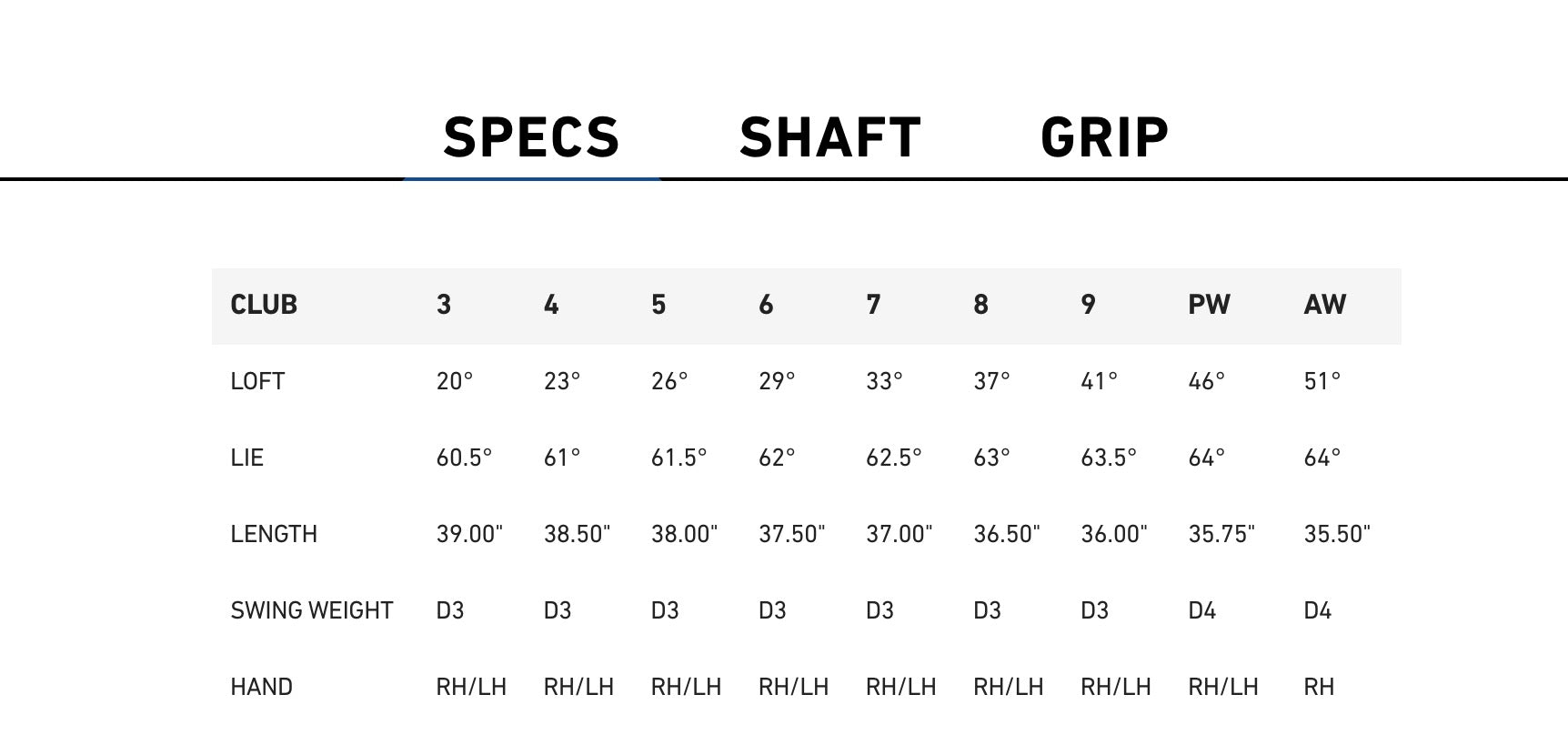 Vigorous Tour testing and feedback resulted in a compact blade length and a thin topline that gives you the clean, confident look you need to play your best. The progressive bounce and sole camber of P·7CB irons ensure consistent turf interaction out of any lie.