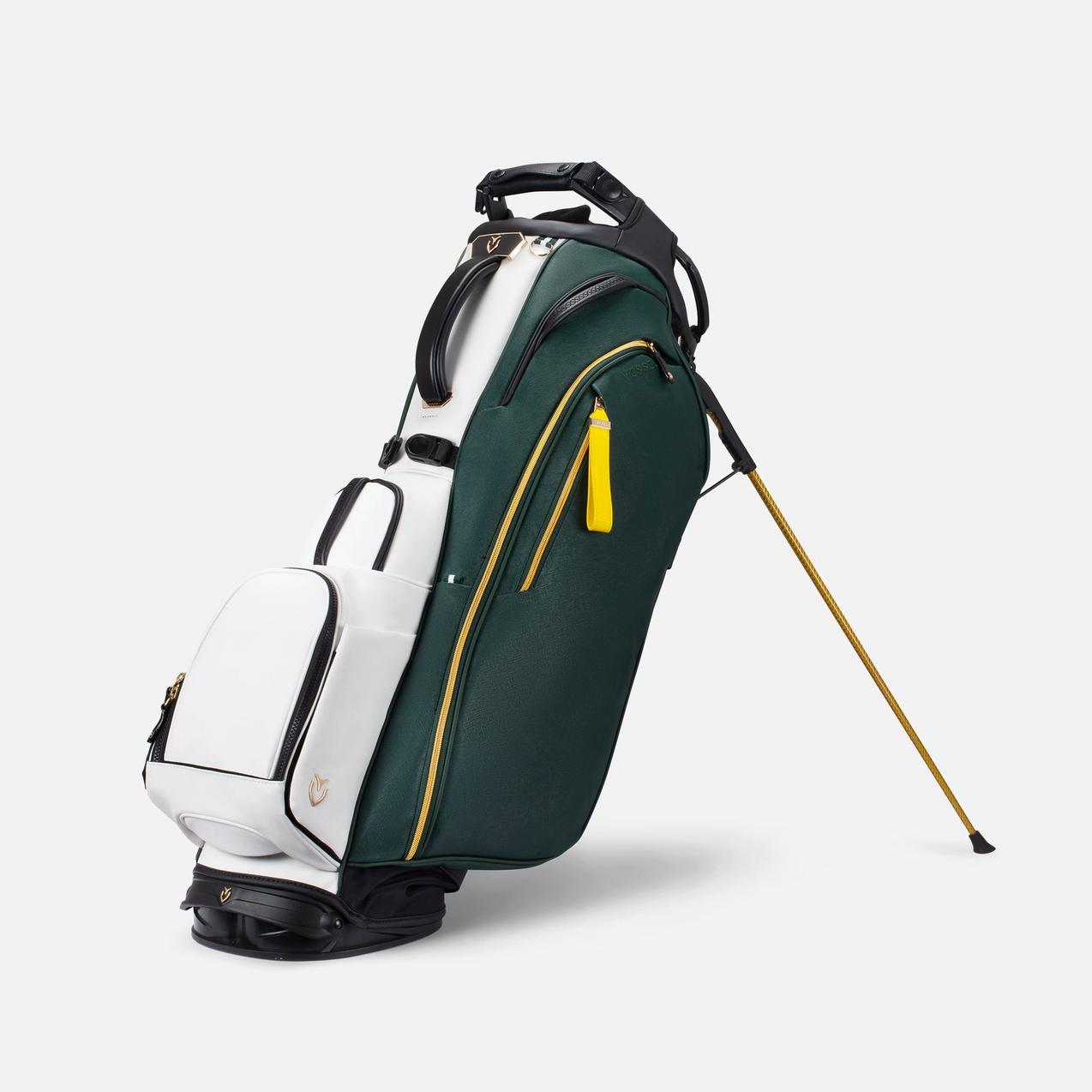 Experience the pinnacle of luxury performance with the Player V Pro. Meticulously crafted for the highest level of functionality and on-course convenience. The newly designed 7-and-14 way tops offer best in class club organization with dedicated putter storage and offset club dividers for optimal club viewing and retrieval. The Player V Pro utilizes VESSEL's patented technologies (Equilibrium Double Strap and Rotator Base) for maximum balance and superior stability. Intentionally placed high strap-attachment points promote further balance and eliminate club fallout while the bag is being carried. A key feature is the cart strap pass-through for added protection when used on a cart or trolley. With too many fine details to name, you'll be pleasantly surprised to discover that every detail, every element, of the Player V Pro is thoughtfully crafted for an uncompromised game.